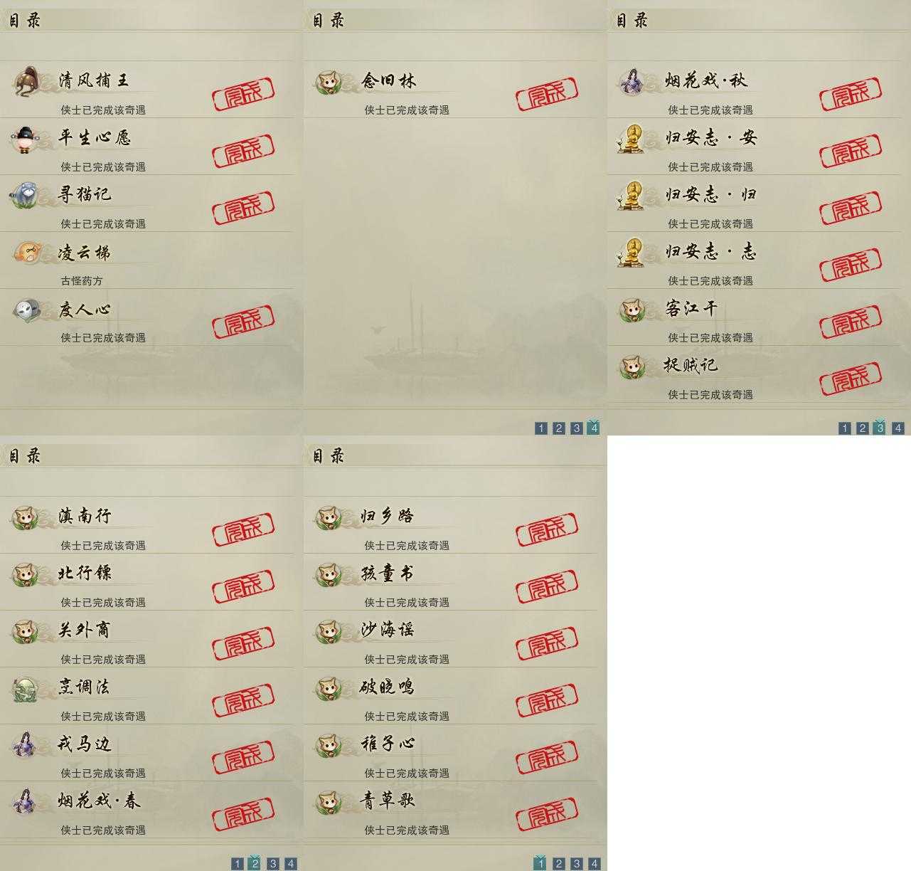 【奇遇】5个[平生心愿, 清风捕王, 寻猫记, 凌云梯, 度人心]