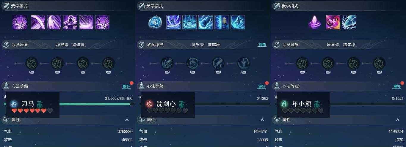 【同伴】刀马志76级境界壹,沈剑心1级境界壹,年小熊1级境界壹