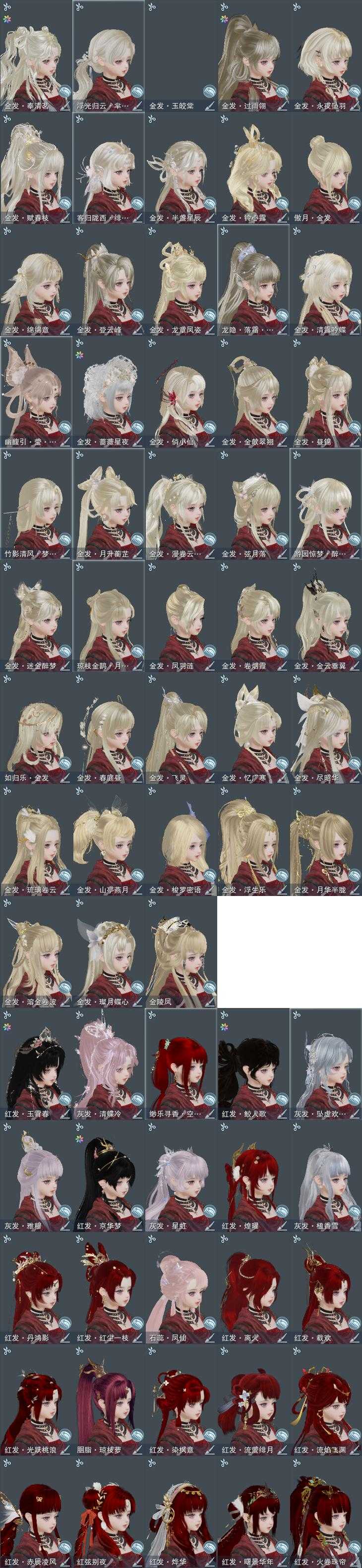 【发型】金发43个[一代金, 狐金, 兔金, 资历金, 鼠金, 中秋金, 鸡金, 蝶金, 喵金, 国金, 龙女金, 飒金, 苍金, 如归金, 角金, 凤金, 牛金, 巴卡金, 云金, 香蕉金, 虎金, 四代中秋金, 刺金, 蔷薇金, 水母金, 龙金, 三代金, 咩金, 铃金, 傲月金发, 精灵金, 蛇金, 永夜金, 翎金, 七中金发, 金发奉清茗, 澄琼枝金发, 蓝游园金发, 竹影梦境金发, 白幽馥金发, 蓝龙隐金发, 粉陇西金发, 白浮光金发], 红发25个[十八万灰, 六红, 七红, 八红, 九红, 十一红, 十二红, 紫发, 凤仙粉, 蝶粉, 猴红, 鸡红, 鼠红, 牛红, 虎红, 兔红, 小资历红, 龙红, 大资历红, 十五红, 绿寻香红发, 马红, 二代灰, 一代灰, 三代灰银], 黑发147个, 白发105个, 盒子发型[新绿中秋白发, 狄仁杰黑, 一代重阳白, 踏云黑发, 飞天黑发, 四代七夕黑发, 猫白, 小白龙黑发, 乘风黑发, 晴岚绘黑发, 棉袄白, 白楼兰黑发, 红如归黑发, 踏云白发, 飞天白发, 澡盒黑发, 四代七夕白发, 飞皇黑发, 幽阑黑发, 同人黑发, 二代乘风黑发, 五代七夕黑发, 小白龙白发, 绿中秋黑发, 乘风白发, 晴岚绘白发, 粉同人黑发, 白楼兰白发, 净尘黑发, 澡盒白发, 飞皇白发, 幽阑白发, 同人白发, 二代乘风白发, 五代七夕白发, 薄雾黑发, 澄琼枝黑发, 粉同人白发, 沧海黑发, 净尘白发, 唐风玉壶黑发, 白红尘黑发, 黑狮黑发, 薄雾白发, 蓝游园黑发, 紫幽香黑发, 沧海白发, 唐风玉壶白发, 新粉游园黑, 白红尘白发, 黑狮白发, 白明光黑发, 小熊黑发, 孔雀黑发, 紫幽香白发, 白六七黑发, 十二黑, 芙蓉黑发, 六代中秋黑发, 二胡黑发, 白明光白发, 小熊白发, 孔雀白发, 五代黄重阳黑发, 竹影梦境黑发, 白六七白发, 芙蓉白发, 竹影火莲黑发, 六代中秋白发, 二胡白发, 黑懒猪黑发, 绿懒猪黑发, 五代黄重阳白发, 红懒猪黑发, 巫歌如匕黑发, 蝴蝶黑发, 星源黑发, 红懒猪白发, 巫歌如匕白发, 蝴蝶白发, 紫人间黑发, 星源白发, 羊盒黑发, 狼盒黑发, 箜篌黑发, 黄人间白发, 七中黄盒黑发, 羊盒白发, 竹露响暮云黑发, 狼盒白发, 箜篌白发, 金幽昙黑发, 七中黄盒白发, 幽涧愀兮白发, 镖盒黑发, 绿傣族黑发, 除夕盒黑发, 卿酒盒黑发, 蓝钻石盒黑发, 镖盒白发, 不良人盒黑发, 绿傣族白发, 紫椿山黑发, 踏青黑发, 除夕盒白发, 卿酒盒白发, 棕黑妖眸盒黑发, 蓝钻石盒白发, 灵龙盒黑发, 不良人盒白发, 蓝兔盒黑发, 圆舞盒黑发, 拈花盒黑发, 蓝椿山白发, 踏青白发, 黑沧洲盒黑发, 西游盒黑发, 棕黑妖眸盒白发, 白持君盒黑发, 灵龙白发, 蓝兔盒白发, 圆舞盒白发, 拈花盒白发, 白八中黑发, 白幽馥黑发, 西游盒白发, 青山盒黑发, 白八中白发, 蓝龙隐黑发, 青山盒白发, 婚纱盒黑发, 黄观灯盒黑发, 海阔盒黑发, 熊猫黑发, 茄盒黑发, 婚纱盒白发, 黑鹭黑发, 梦盒黑发, 兰陵盒黑发, 海阔盒白发, 熊猫白发, 蓝月下黑发, 茄盒白发, 蓝鹭白发, 白蛇盒黑发, 柿盒黑发, 镰刀黑发, 红上火黑发, 梦盒白发, 兰陵盒白发, 蓝千山黑发, 柿盒白发, 白蛇盒白发, 云掠霜峰黑发, 镰刀白发, 红上火白发, 粉陇西黑发, 燕月盒黑发, 紫寻香黑发, 绿寻香黑发, 云掠霜峰白发, 瑶华盒黑发, 红蝴蝶黑发, 燕月盒白发, 重花游黑发, 瑶华盒白发, 仙剑黑发, 潮涌盒黑发, 红蝴蝶白发, 云间盒黑发, 傀儡黑发, 仙剑白发, 红问刀黑发, 重花游白发, 潮涌盒白发, 渡我黑发, 云间盒白发, 紫沙丘黑发, 傀儡白发, 十七黑发, 黑战国黑发, 渡我白发, 玉璃盒黑发, 紫沙丘白发, 白浮光黑发, 十七白发, 瑶台仙梦黑发, 玉璃盒白发, 金波斯黑发, 瑶台仙梦白发, 金波斯白发], 总页数36