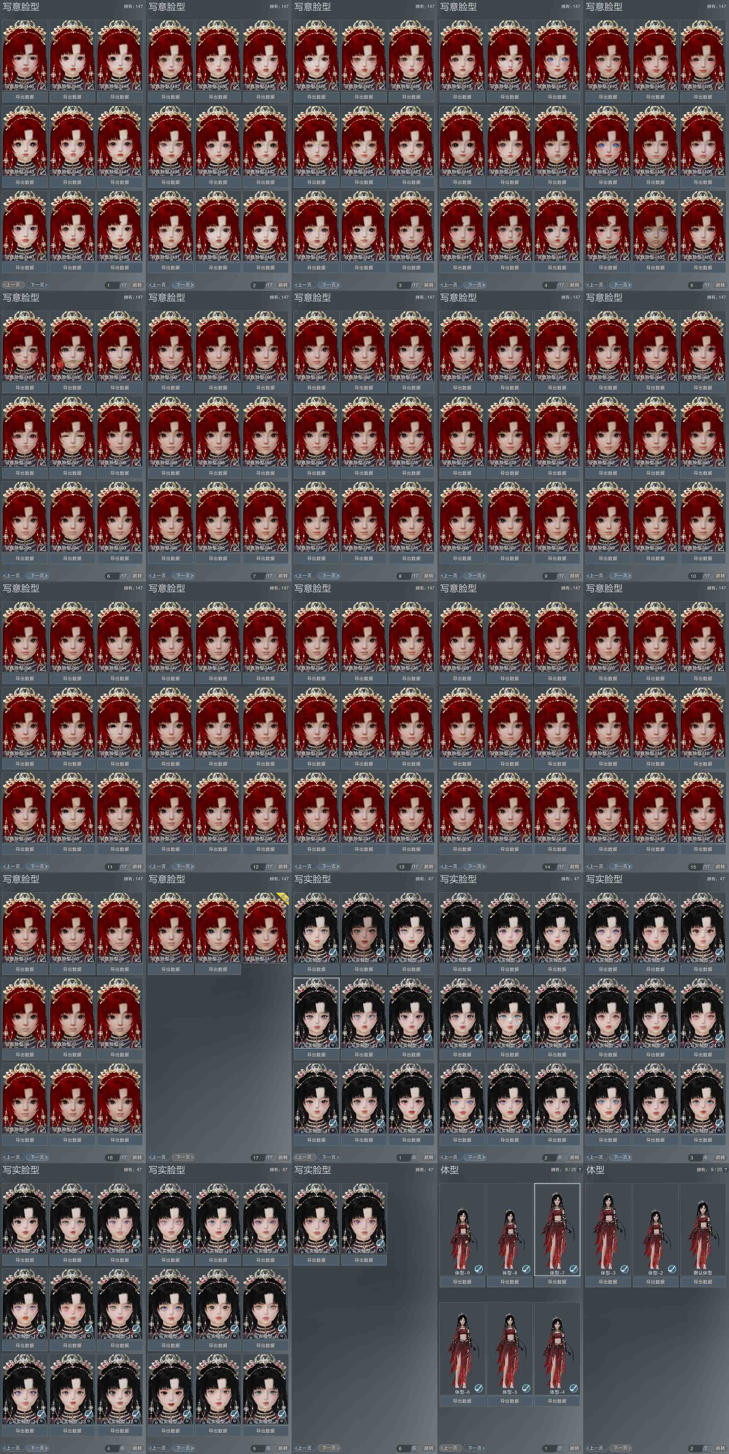 【捏脸】写意脸型147个,写实脸型47个,体型9个