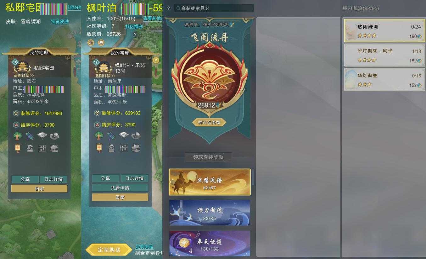 【家园】房屋等级16,社区等级了,私邸宅园,梓行点28912