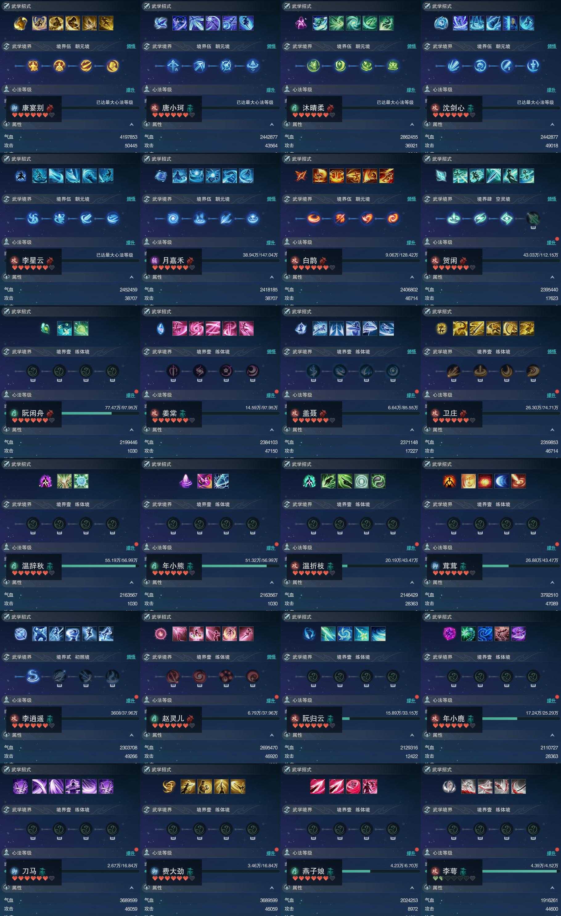 【同伴】康宴别90级境界伍,唐小珂90级境界伍,沐晴柔90级境界伍,沈剑心90级境界伍,李星云90级境界伍,月嘉禾87级境界伍,白鹊86级境界伍,贺闲85级境界肆,阮闲舟84级境界壹,姜棠志84级境界壹,盖聂83级境界壹,卫庄82级境界壹,温辞秋80级境界壹,年小熊80级境界壹,温折枝78级境界壹,茸茸志78级境界壹,李逍遥77级境界贰,赵灵儿77级境界壹,阮归云76级境界壹,年小鹿74级境界壹,刀马志71级境界壹,费大劲71级境界壹,燕子娘64级境界壹,李萼志61级境界壹