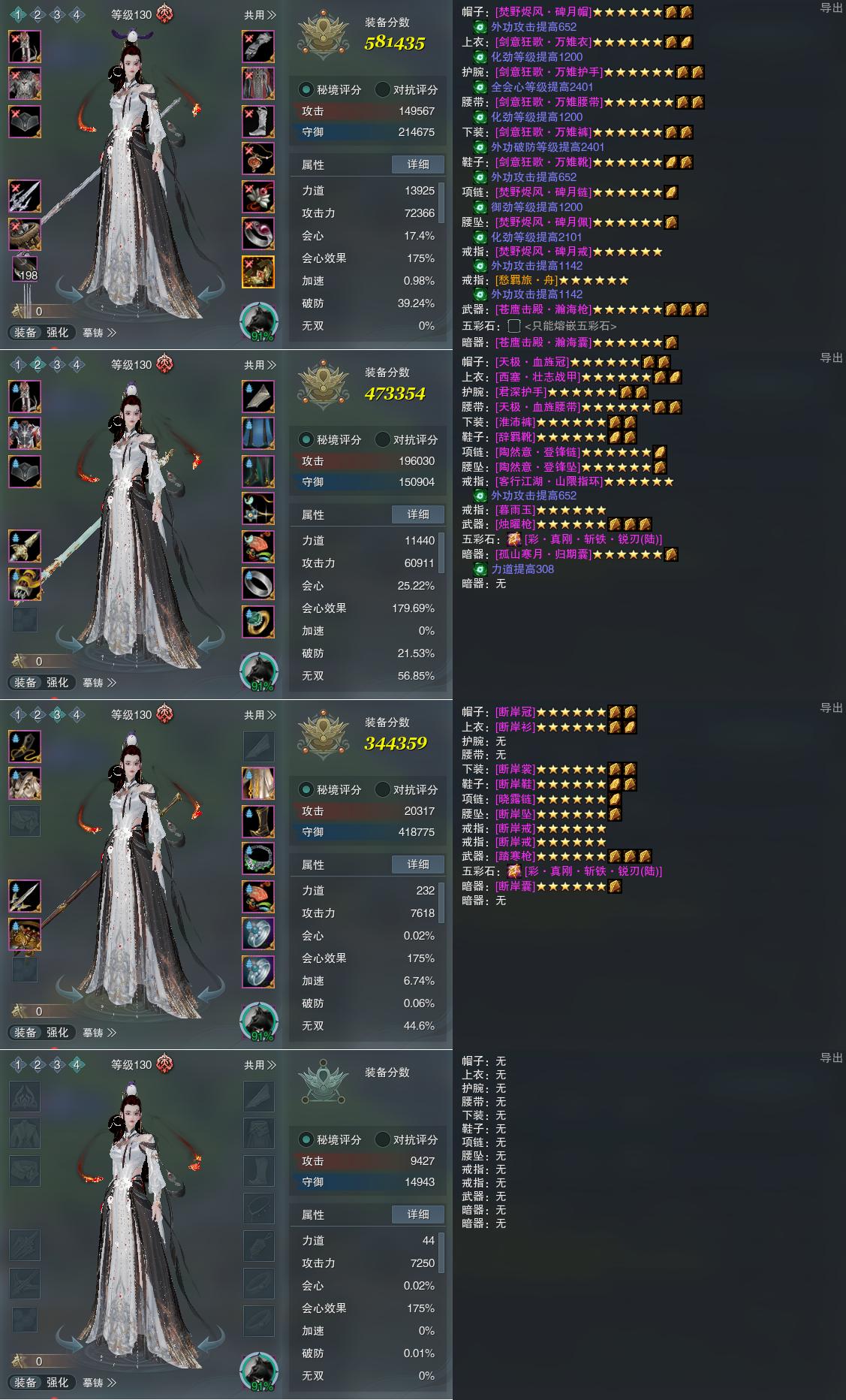【装备】130级,傲血战意PVP581435,傲血战意PVE473354,装备三344359,装备四0