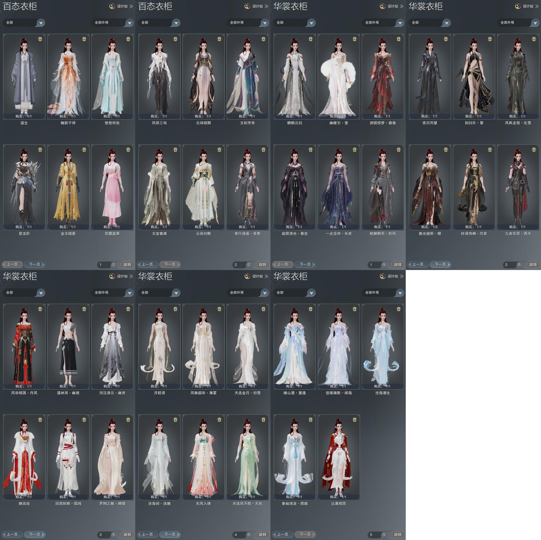 单盒成衣:[三代元宵衣, 黄如归衣, 旗袍衣, 蓝水袖衣, 黑傣族衣, 除夕盒衣, 黑沧洲盒衣, 黑八中衣, 白幽馥衣]
