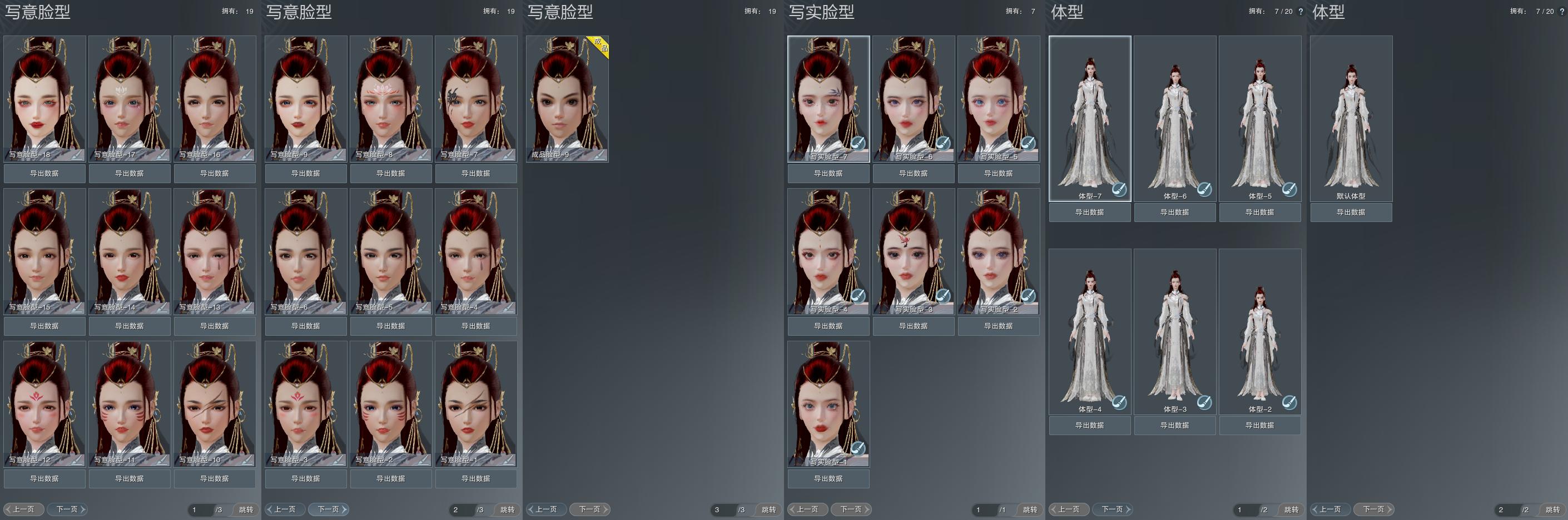 【捏脸】写意脸型19个,写实脸型7个,体型7个
