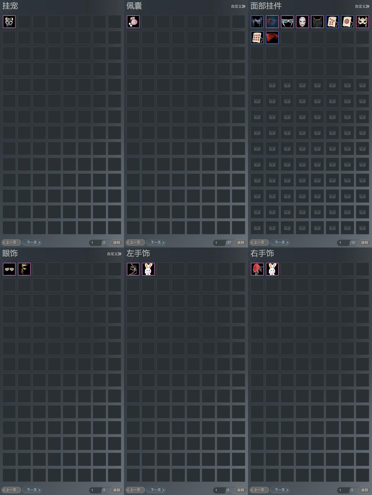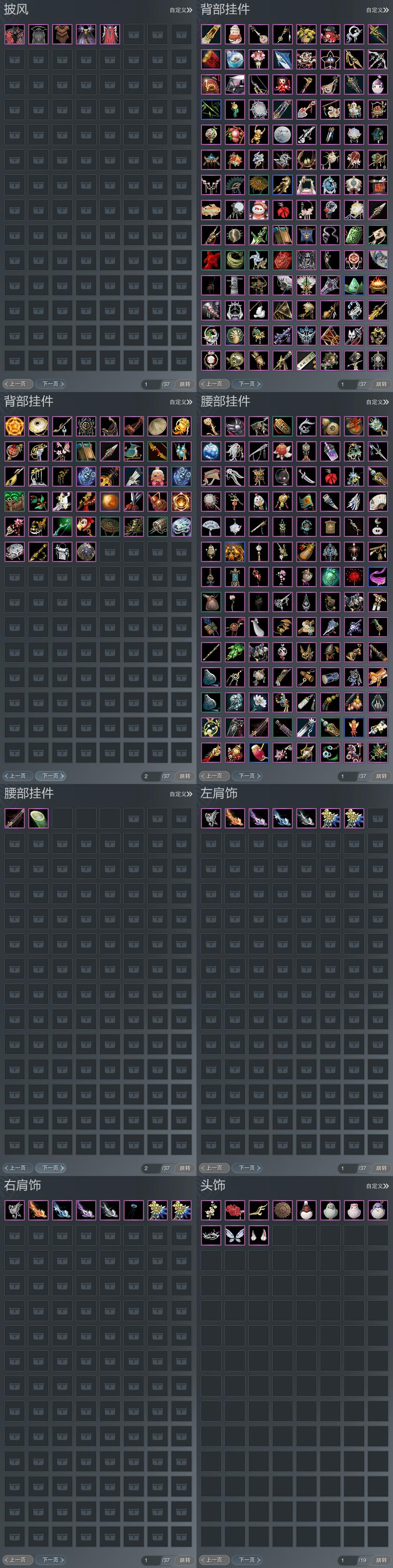【肩饰】7左,8右,[栖鹤云归·左, 双鱼曳波·慧福·左, 双鱼曳波·如意·左, 双鱼曳波·极乐·左, 双鱼曳波·无量·左][栖鹤云归·右, 海升霞蔚·霁景·右]