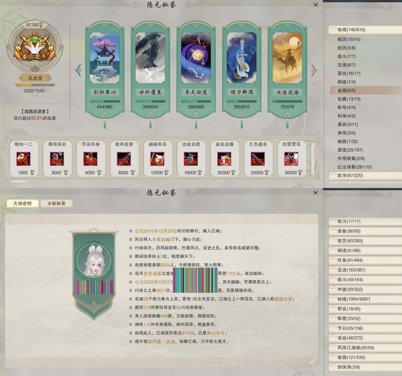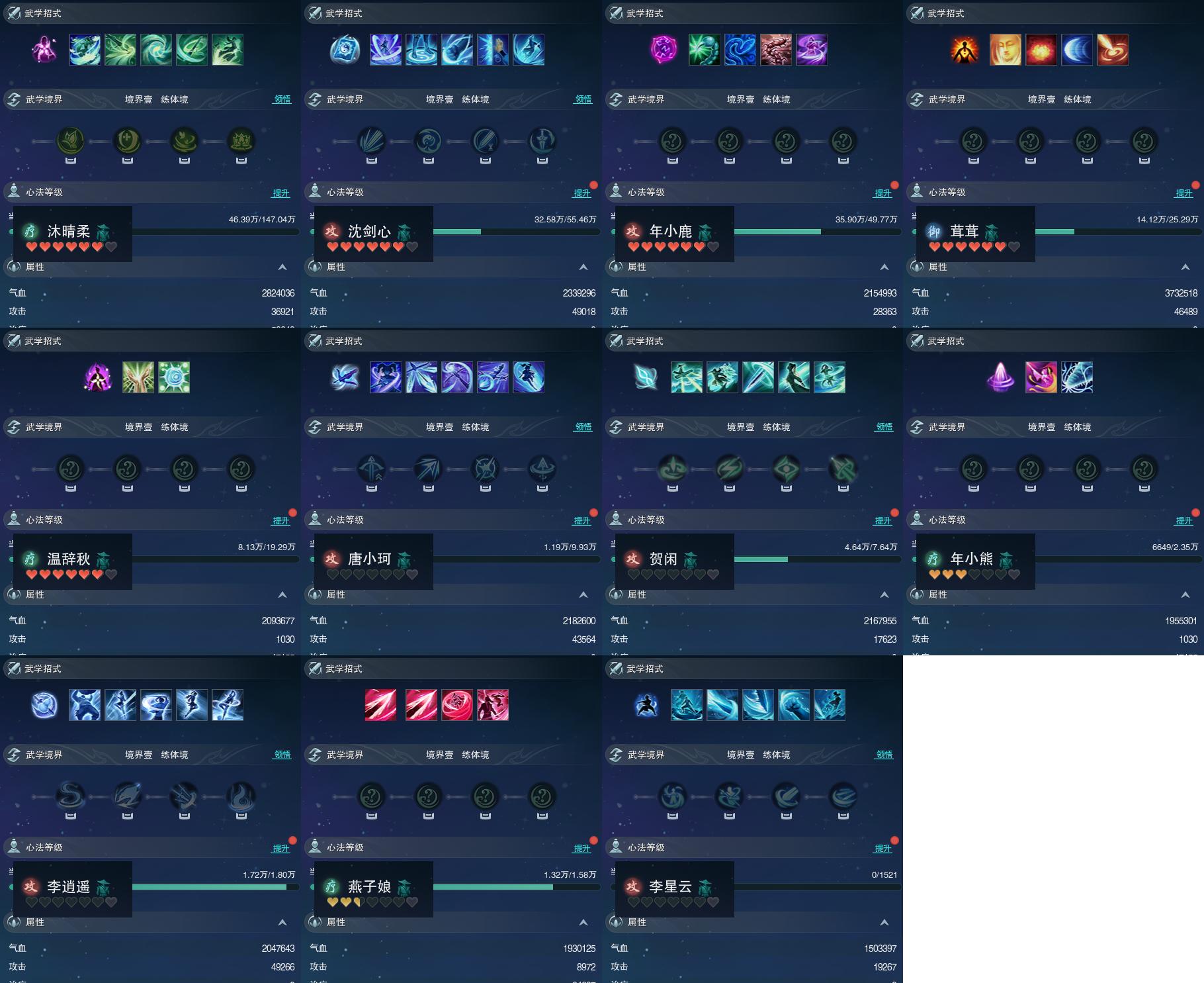 【同伴】沐晴柔87级境界壹,沈剑心81级境界壹,年小鹿79级境界壹,茸茸志74级境界壹,温辞秋72级境界壹,唐小珂67级境界壹,贺闲志65级境界壹,年小熊56级境界壹,李逍遥54级境界壹,燕子娘53级境界壹,李星云1级境界壹