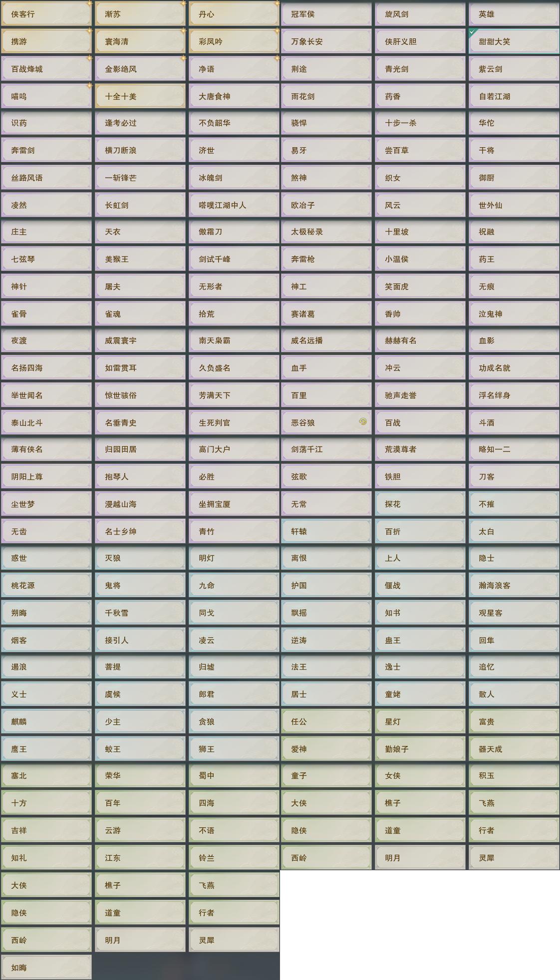 【奇珍】13个[孩童书, 兽王佩, 一念间, 北行镖, 烹调法, 烟花戏·风, 烟花戏·月, 归安志·归, 江湖录, 滴水恩]