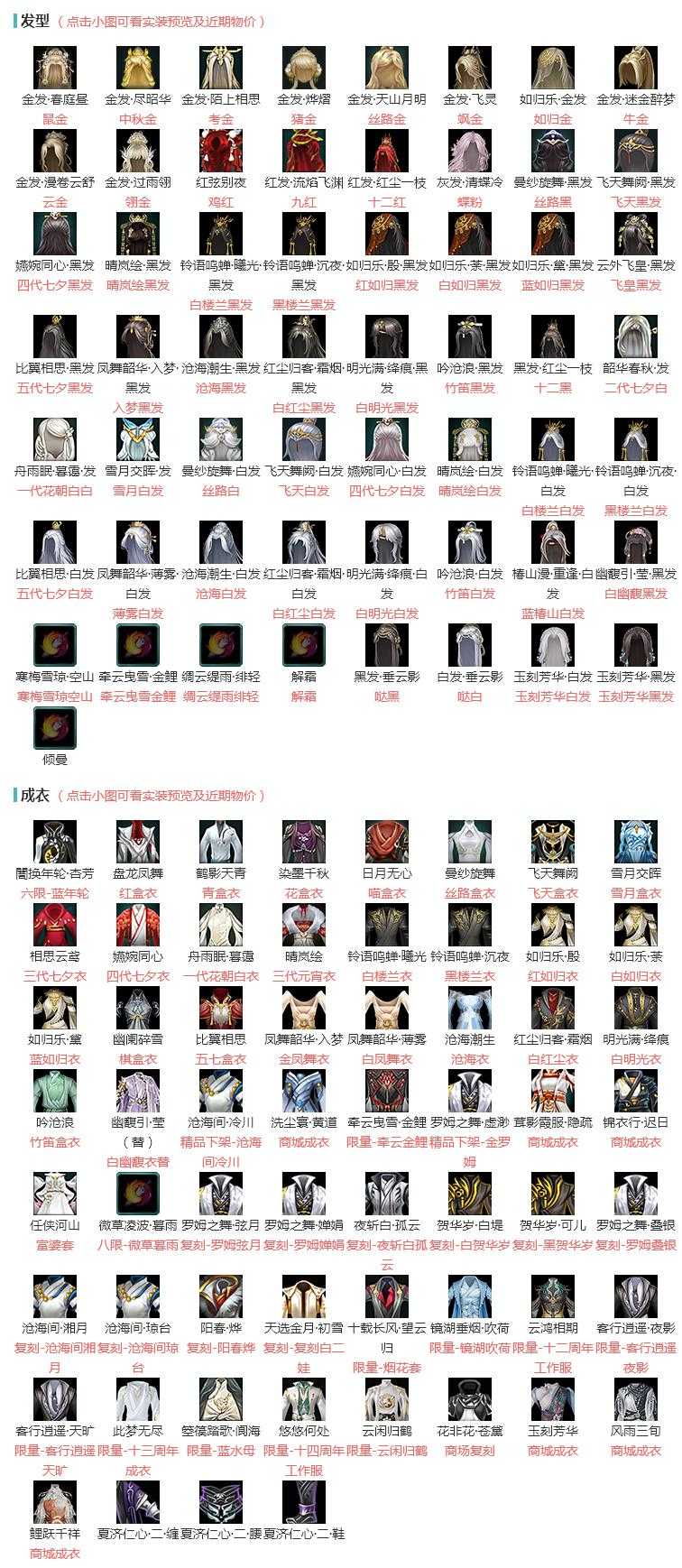 限时限量:[客行逍遥天旷, 蓝水母, 烟花套, 十二周年工作服, 镜湖吹荷, 云闲归鹤, 牵云金鲤, 十三周年成衣, 十四周年工作服, 客行逍遥夜影, 富婆套, 微草暮雨]