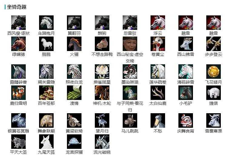 【坐骑】3个[西风瘦逐狱, 乌蹄抱月, 鹏鹏]