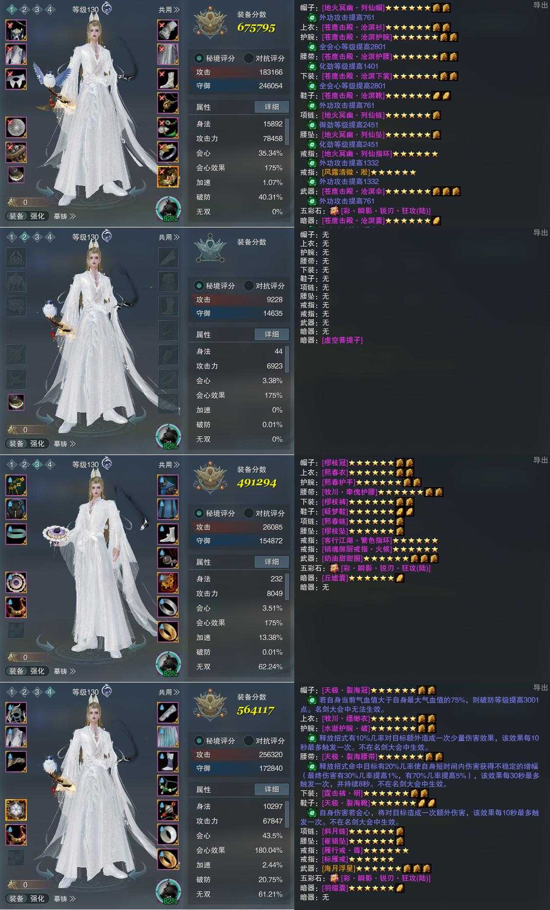 【装备】130级,凌海诀PVP675795,装备二0,蓬莱装备三491294,凌海诀PVE564117