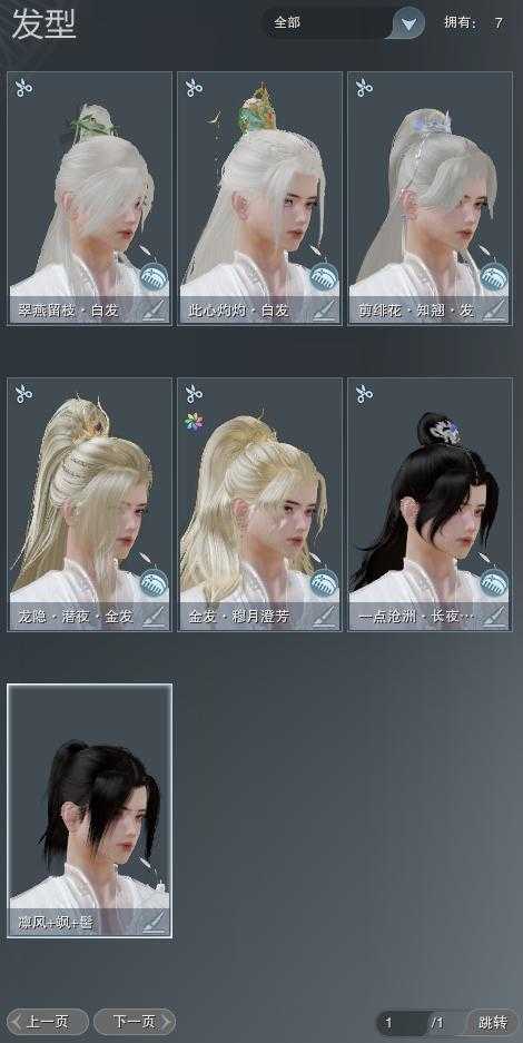 【发型】金发2个[穆金, 黑龙隐金发], 红发0个[], 黑发1个, 白发3个, 盒子发型[黑沧洲盒黑发, 十七白发], 总页数1