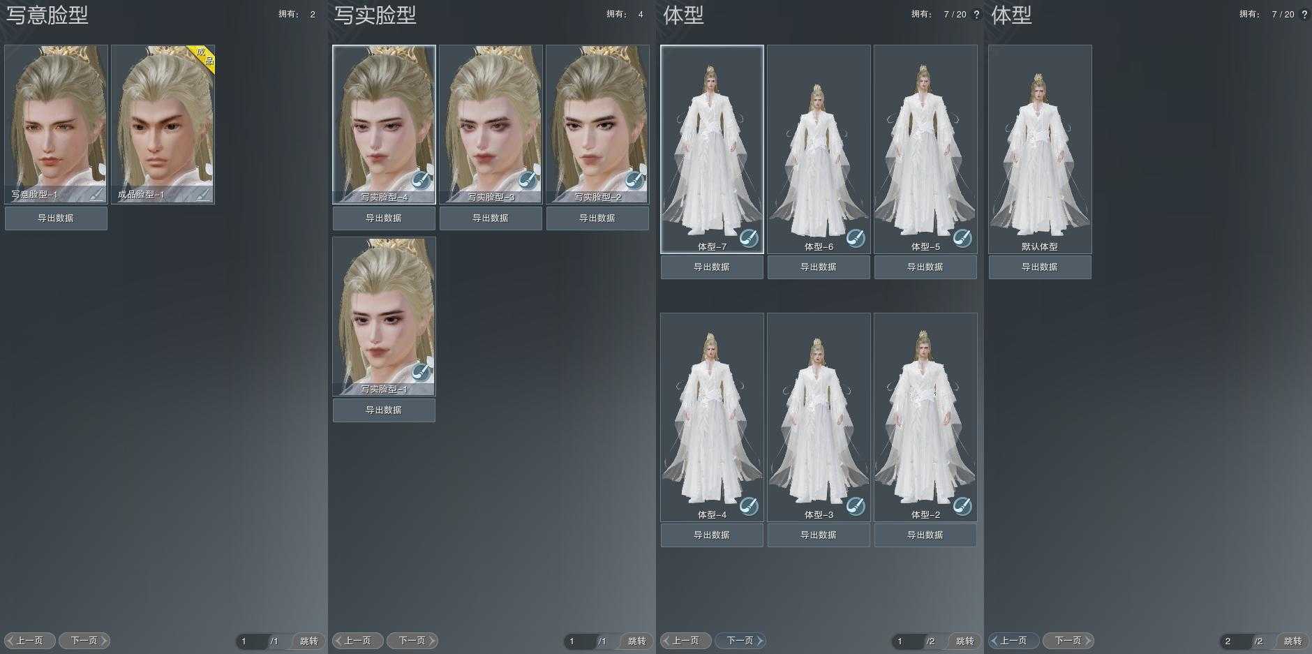 【捏脸】写意脸型2个,写实脸型4个,体型7个