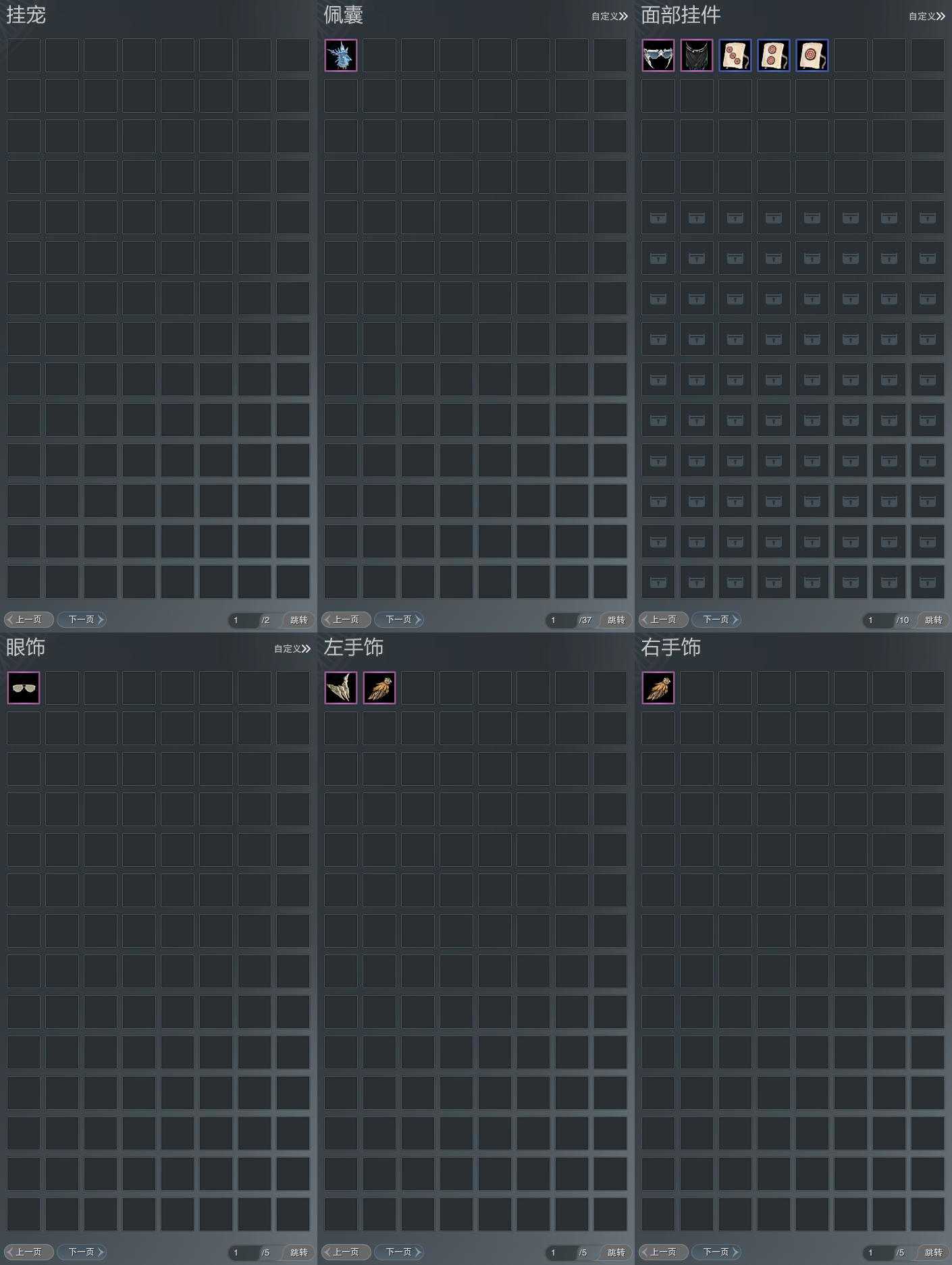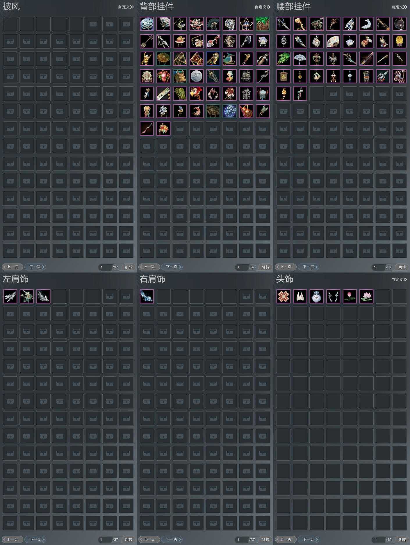 【肩饰】3左,1右,[玄龙夜舞·左, 香兰沁雪·左, 双鱼曳波·无量·左][]