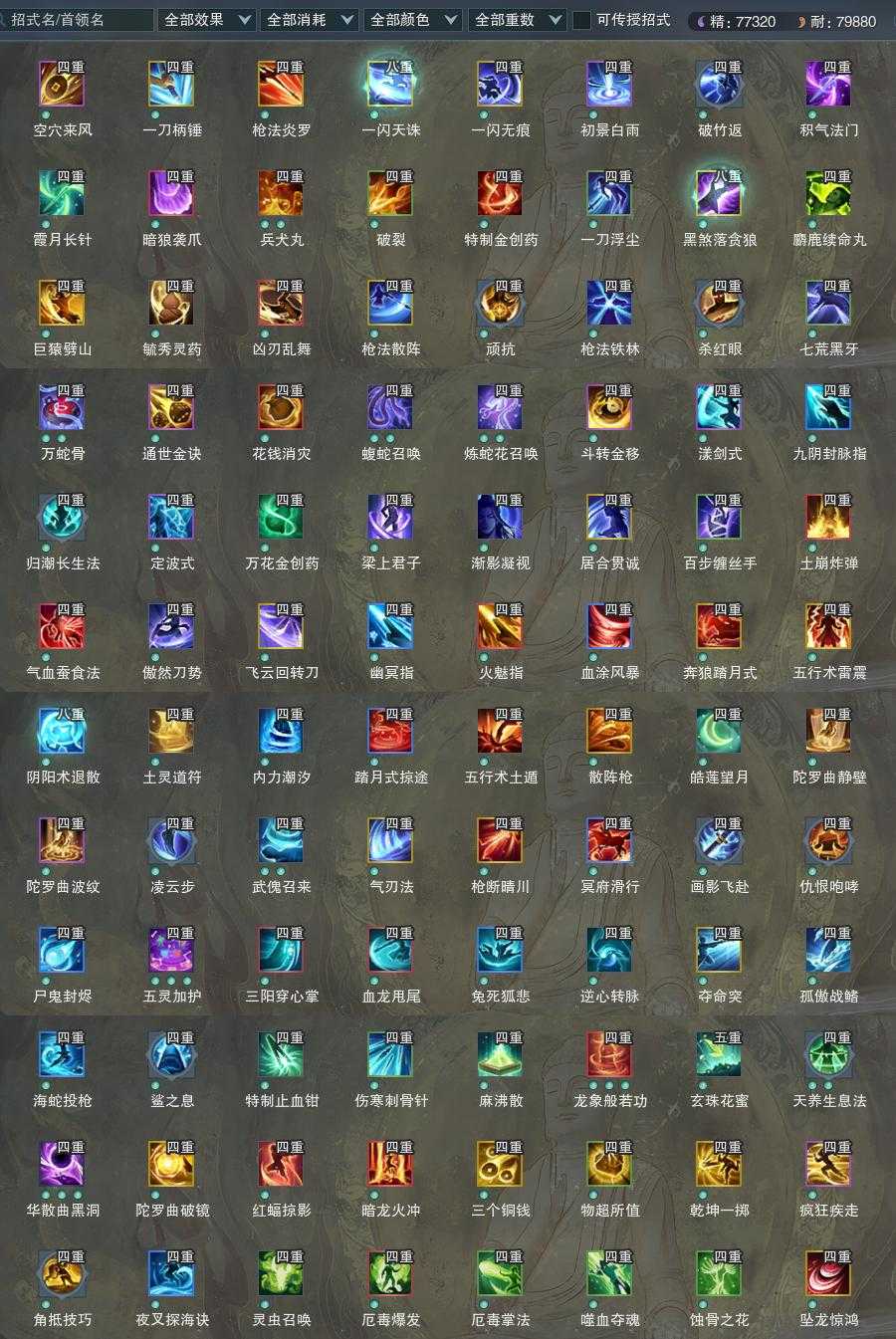 【橙武】(仅本门派)[120小铁*85, 130小铁*3, 110小铁*223, 100小铁*9, 95小铁*8, 80小铁*18]