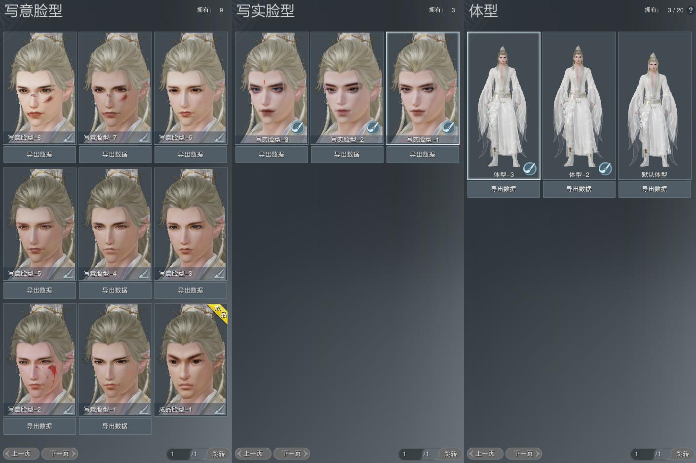 【捏脸】写意脸型9个,写实脸型3个,体型3个