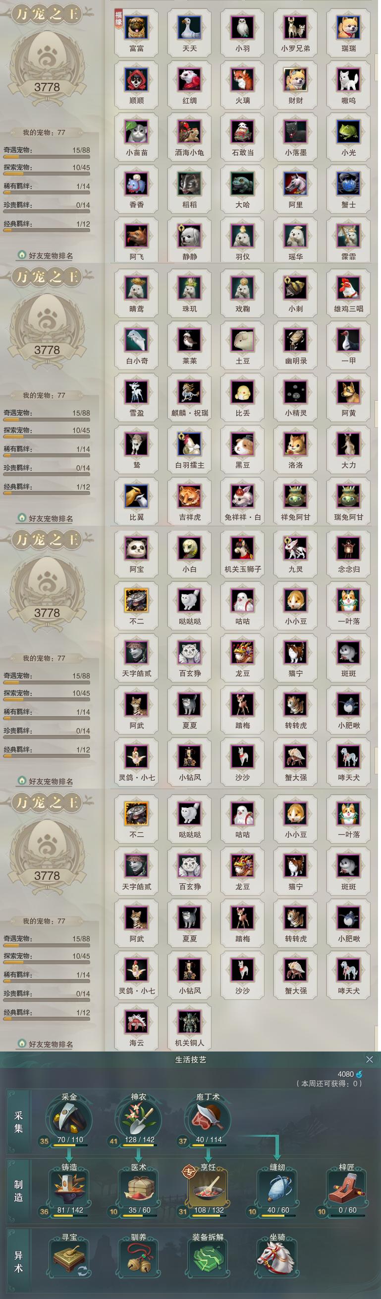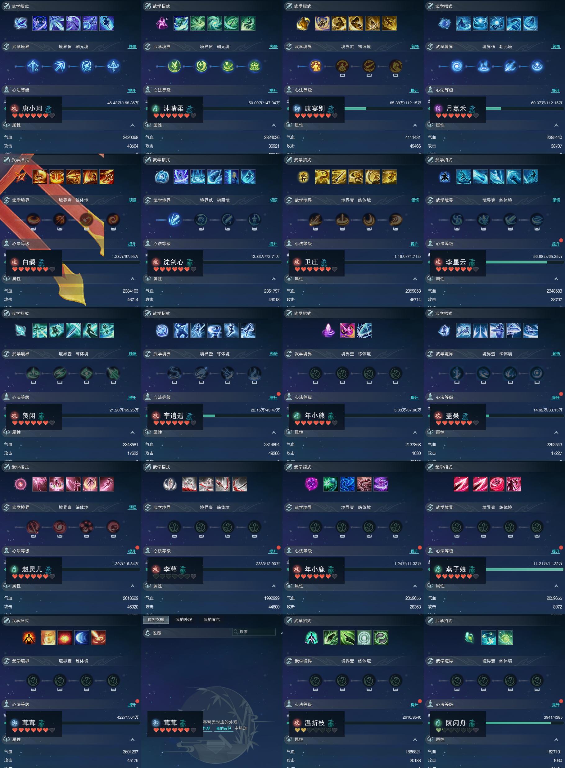 【同伴】唐小珂88级境界伍,沐晴柔87级境界伍,康宴别85级境界贰,月嘉禾85级境界伍,白鹊慈84级境界壹,沈剑心83级境界贰,卫庄意82级境界壹,李星云81级境界壹,贺闲志81级境界壹,李逍遥78级境界壹,年小熊77级境界壹,盖聂76级境界壹,赵灵儿71级境界壹,李萼志69级境界壹,年小鹿68级境界壹,燕子娘68级境界壹,茸茸志65级境界壹,茸茸志级,温折枝48级境界壹,阮闲舟41级境界壹