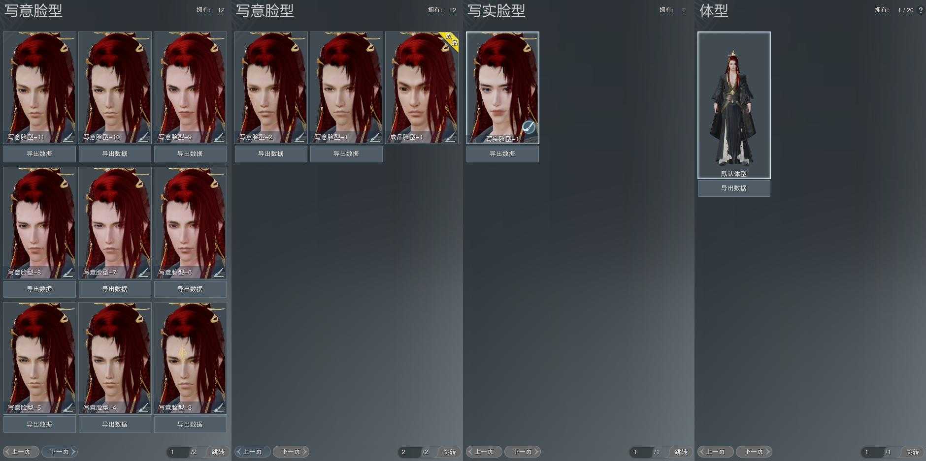 【捏脸】写意脸型12个,写实脸型1个,体型1个