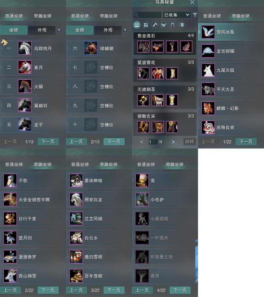 【奇趣】19个[虹麒麟, 雪凤冰凰, 兰船, 西山拂雪, 照夜白龙, 墨染琳琅, 鹿车, 猛男椅子, 乌龟, 毛驴]