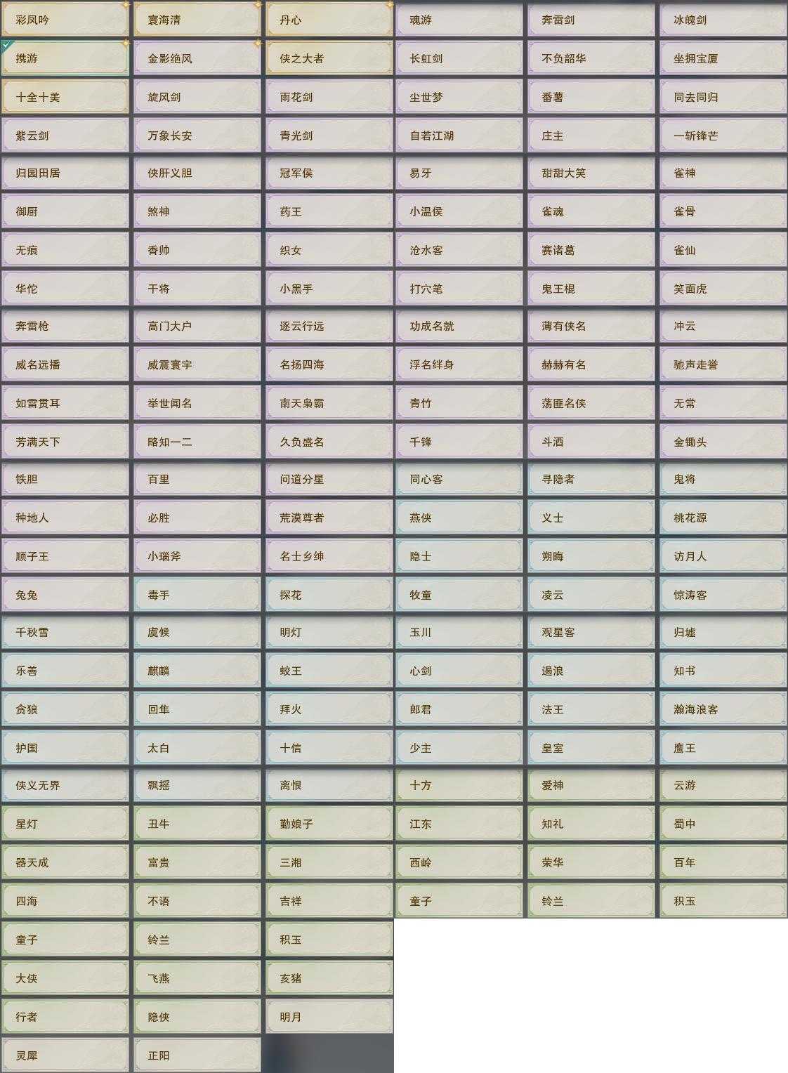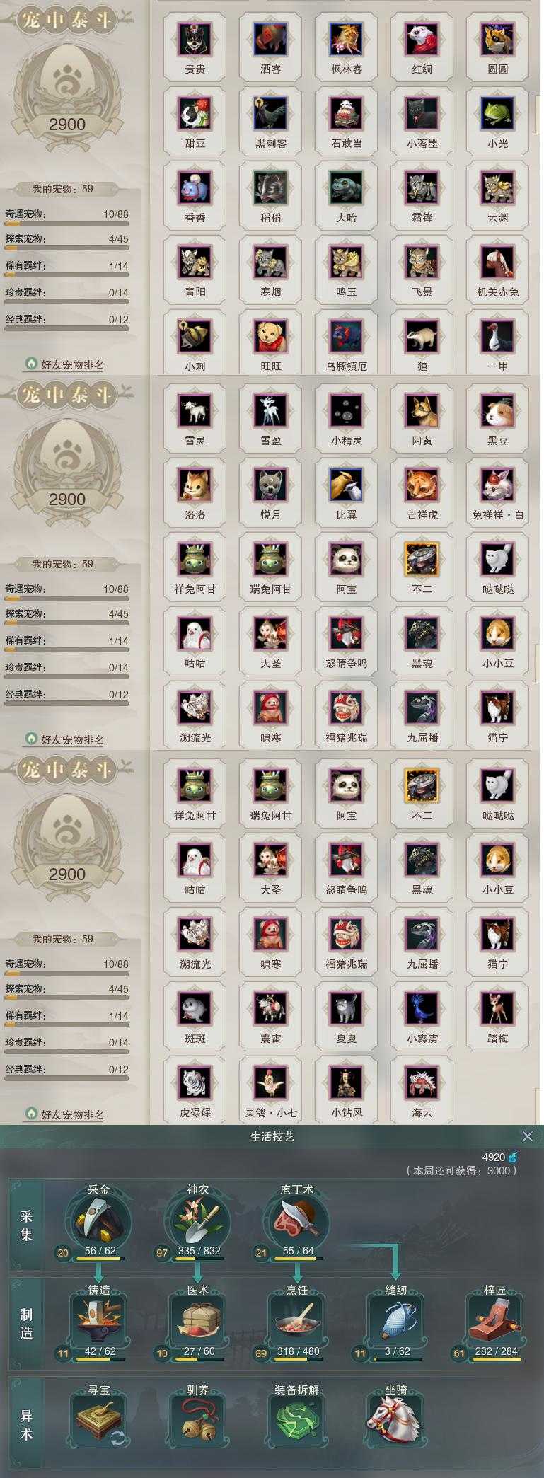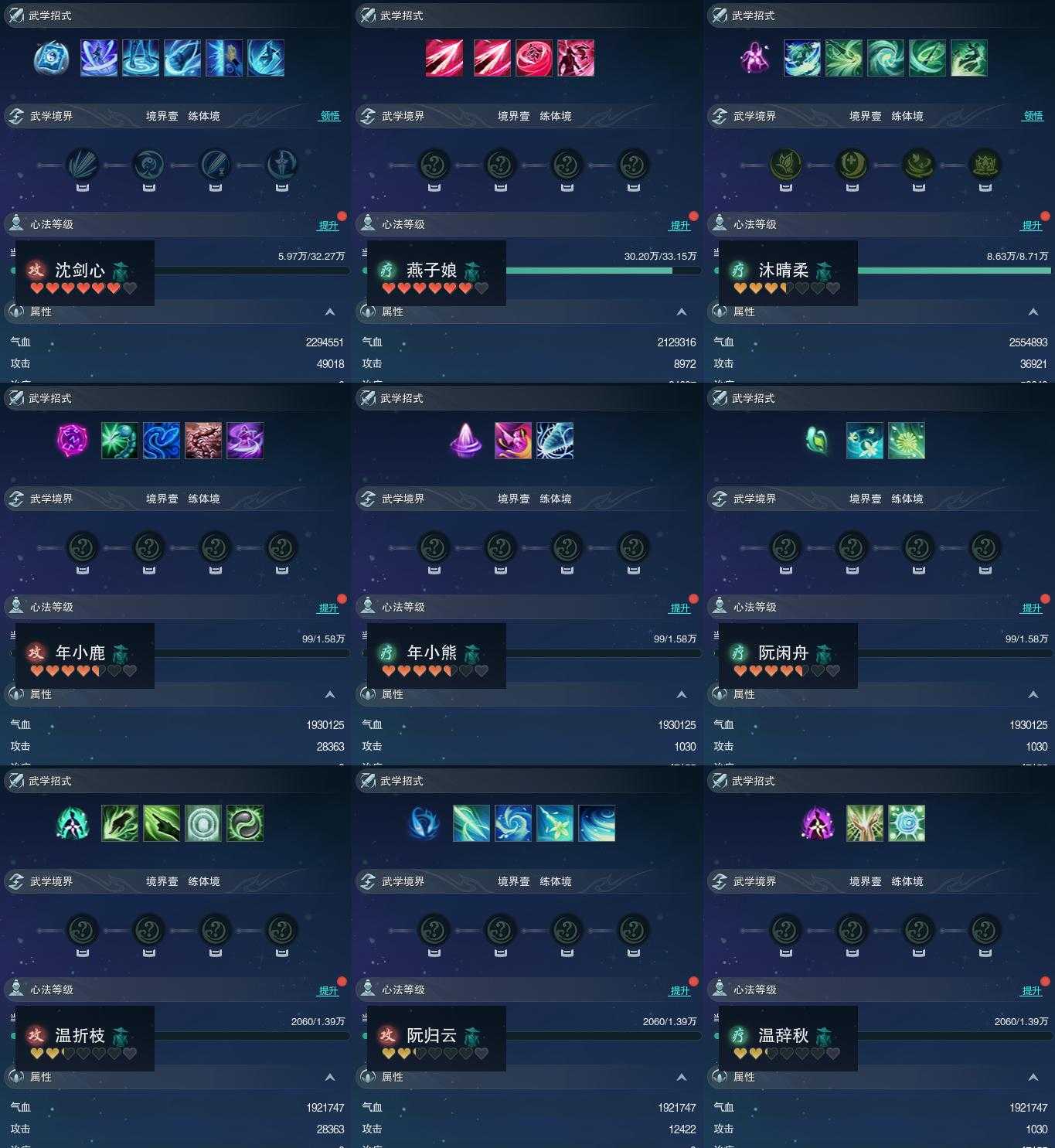 【同伴】沈剑心77级境界壹,燕子娘76级境界壹,沐晴柔66级境界壹,年小鹿53级境界壹,年小熊53级境界壹,阮闲舟53级境界壹,温折枝52级境界壹,阮归云52级境界壹,温辞秋52级境界壹