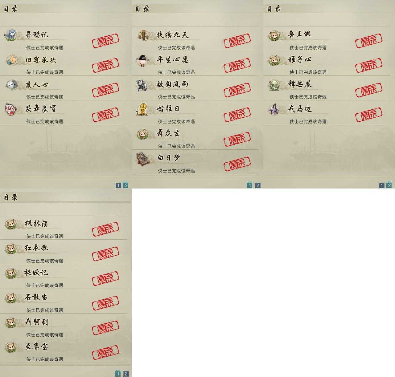 【奇遇】10个[白日梦, 平生心愿, 惜往日, 扶摇九天, 故园风雨, 舞众生, 寻猫记, 庆舞良宵, 度人心, 旧宴承欢]