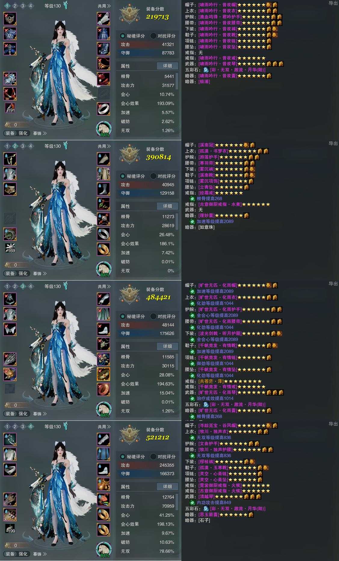【装备】130级,装备一219713,相知PVE390814,相知PVP484421,莫问PVE521212
