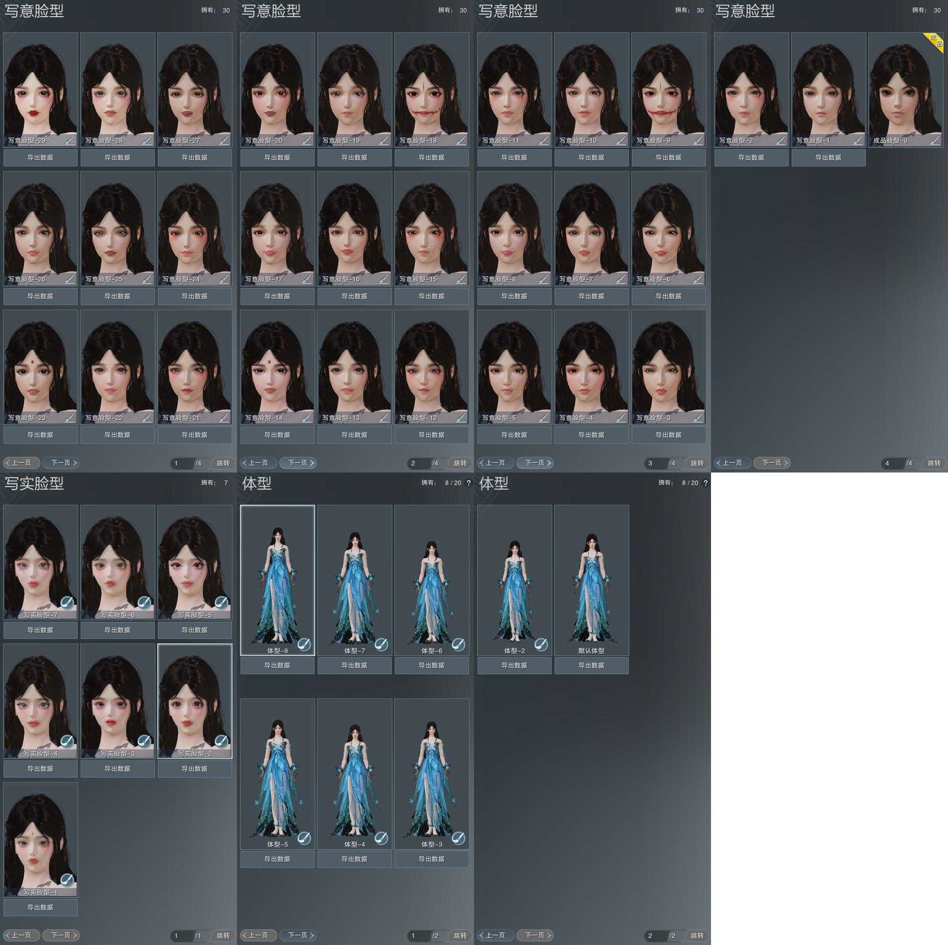 【捏脸】写意脸型30个,写实脸型7个,体型8个