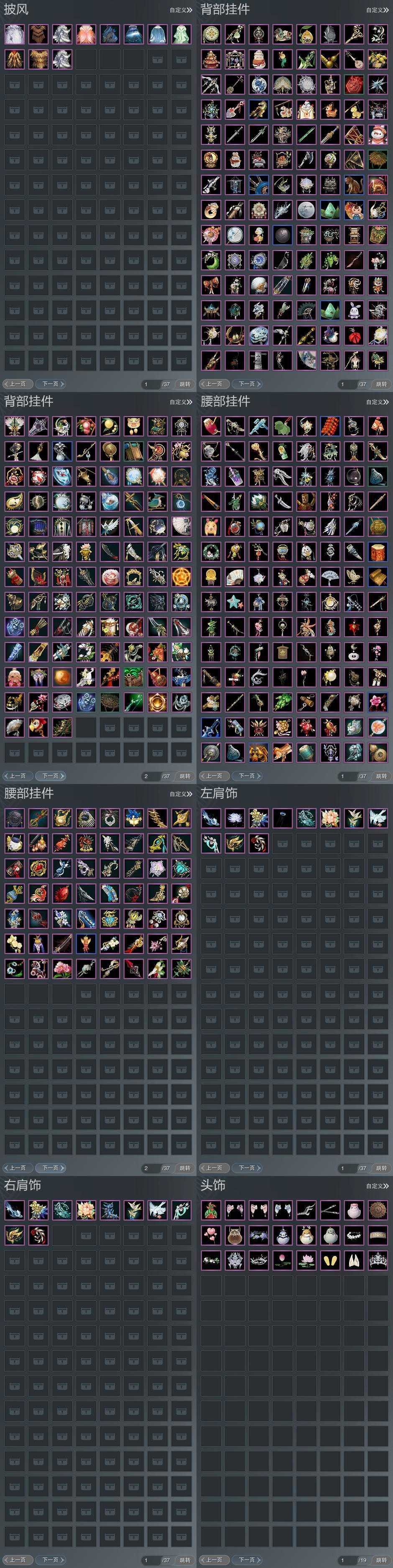 【肩饰】11左,10右,[双鱼曳波·极乐·左, 绝代仙·千幻·左, 海升霞蔚·霁景·左, 陌上窈窕·左, 鹤影天青·左, 盘龙凤舞·左][陌上窈窕·右, 玄天覆雪·右, 鹤影天青·右, 盘龙凤舞·右]