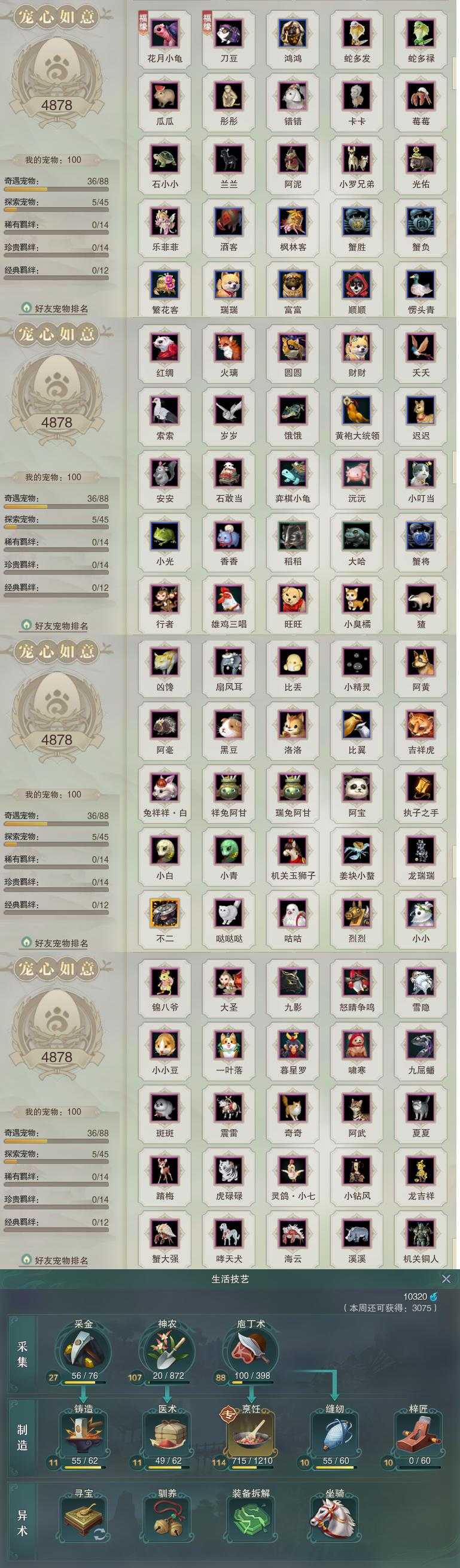 【同伴】沐晴柔82级境界壹,唐小珂81级境界壹,沈剑心81级境界壹,盖聂78级境界壹,月嘉禾76级境界壹,卫庄意74级境界壹,康宴别73级境界叁,温辞秋69级境界壹,燕子娘67级境界壹,年小熊66级境界壹,赵灵儿65级境界壹,年小鹿42级境界壹,茸茸志4级境界壹