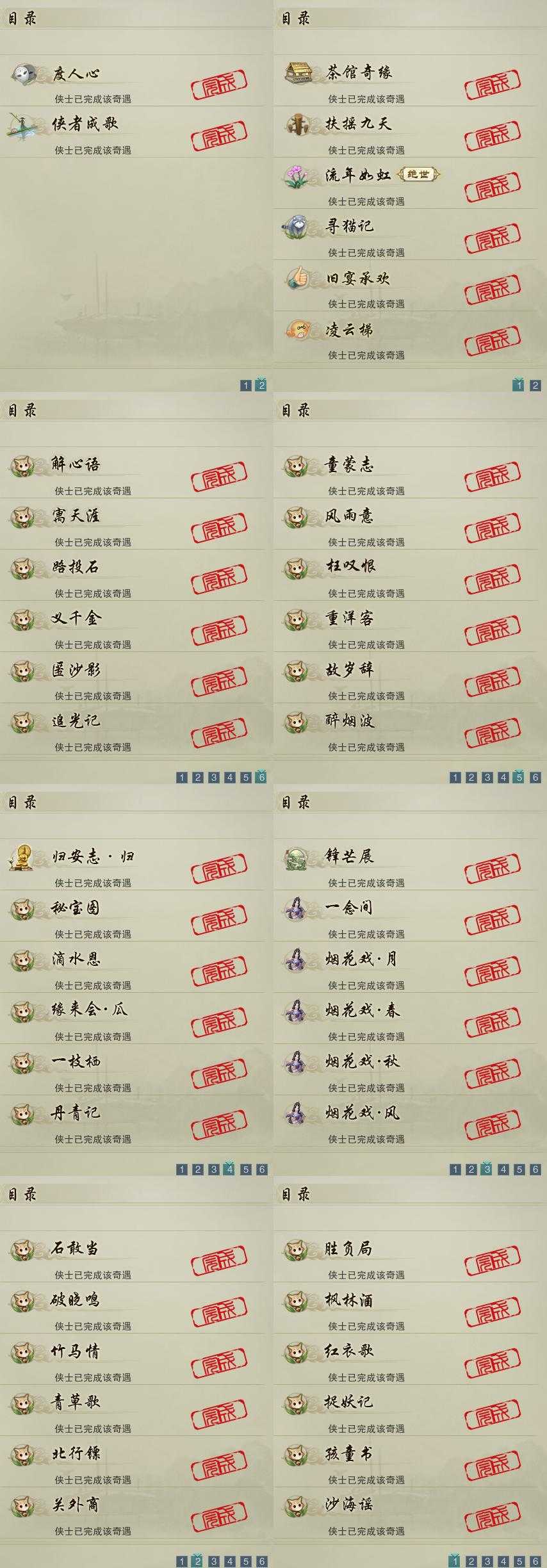 【奇遇】8个[扶摇九天, 流年如虹, 茶馆奇缘, 寻猫记, 凌云梯, 度人心, 旧宴承欢, 侠者成歌]