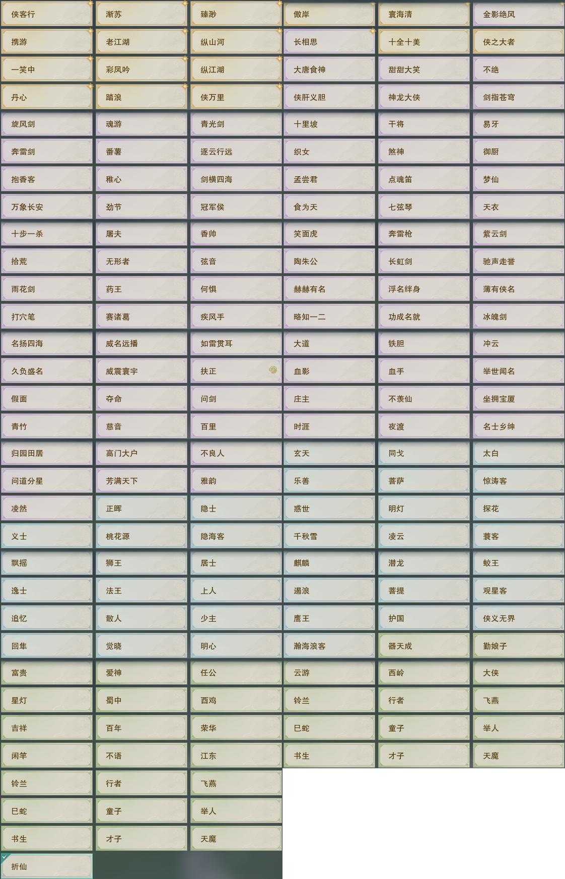 【奇珍】36个[枫林酒, 红衣歌, 胜负局, 孩童书, 捉妖记, 石敢当, 青草歌, 破晓鸣, 沙海谣, 竹马情]