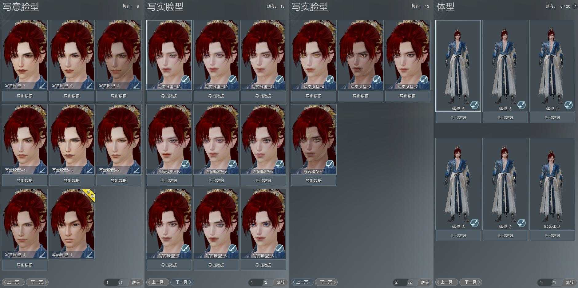 【捏脸】写意脸型8个,写实脸型13个,体型6个