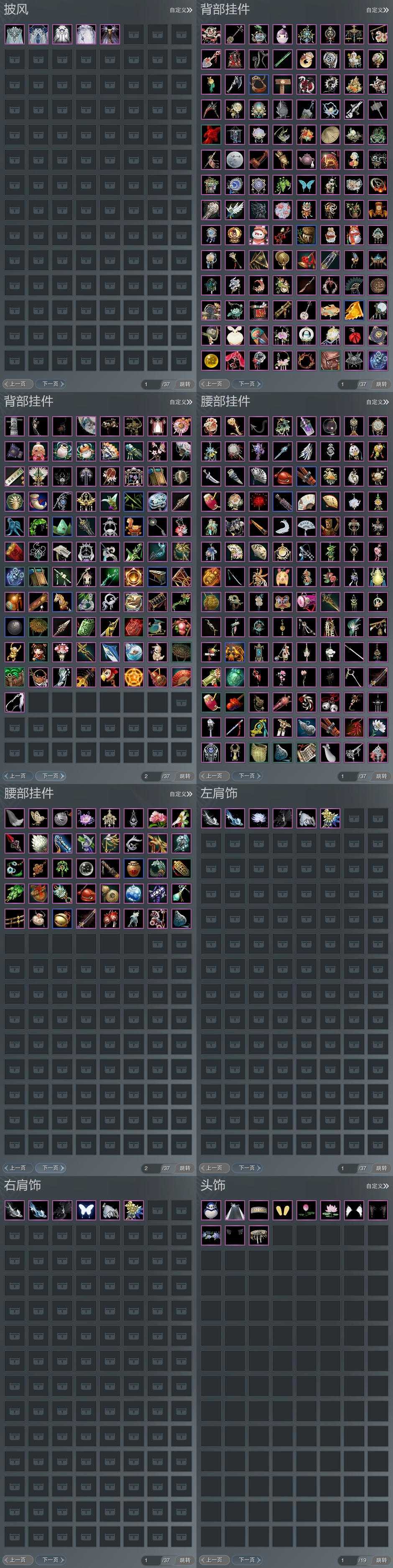【肩饰】6左,6右,[双鱼曳波·无量·左, 双鱼曳波·极乐·左, 绝代仙·千幻·左, 风刀逐浪·左, 霜岱应元·左][风刀逐浪·右, 觅花踪·碧空·右, 霜岱应元·右]