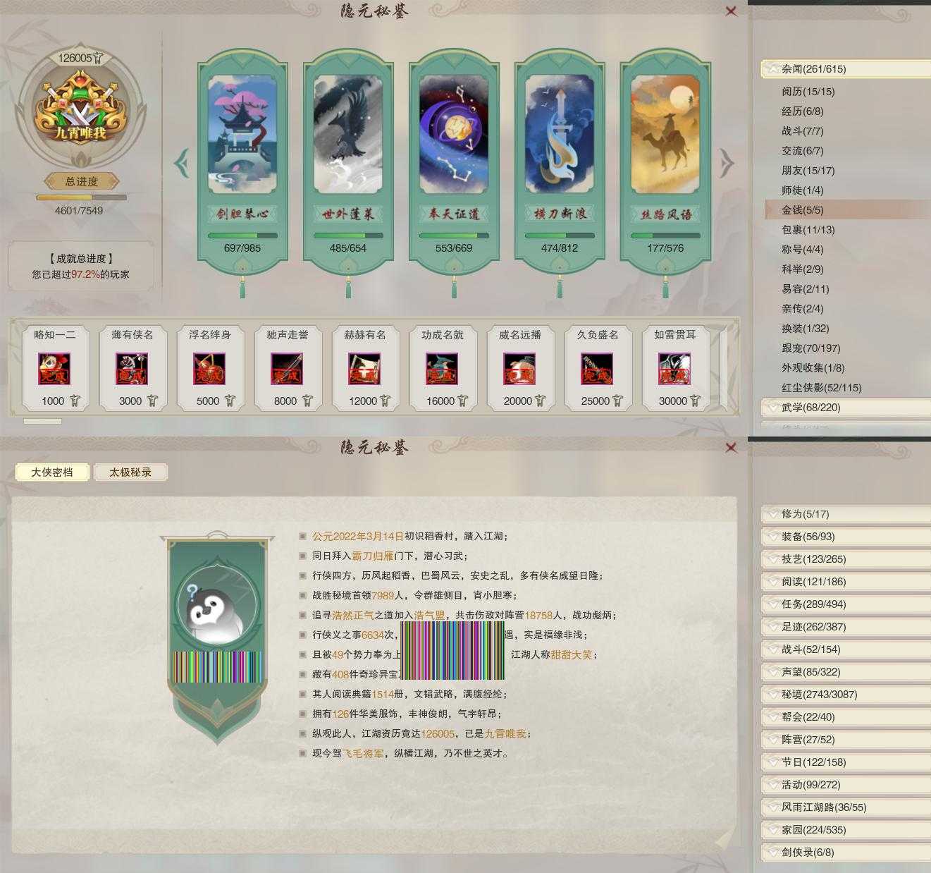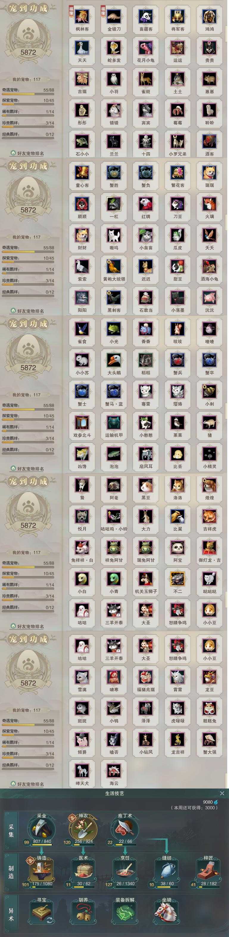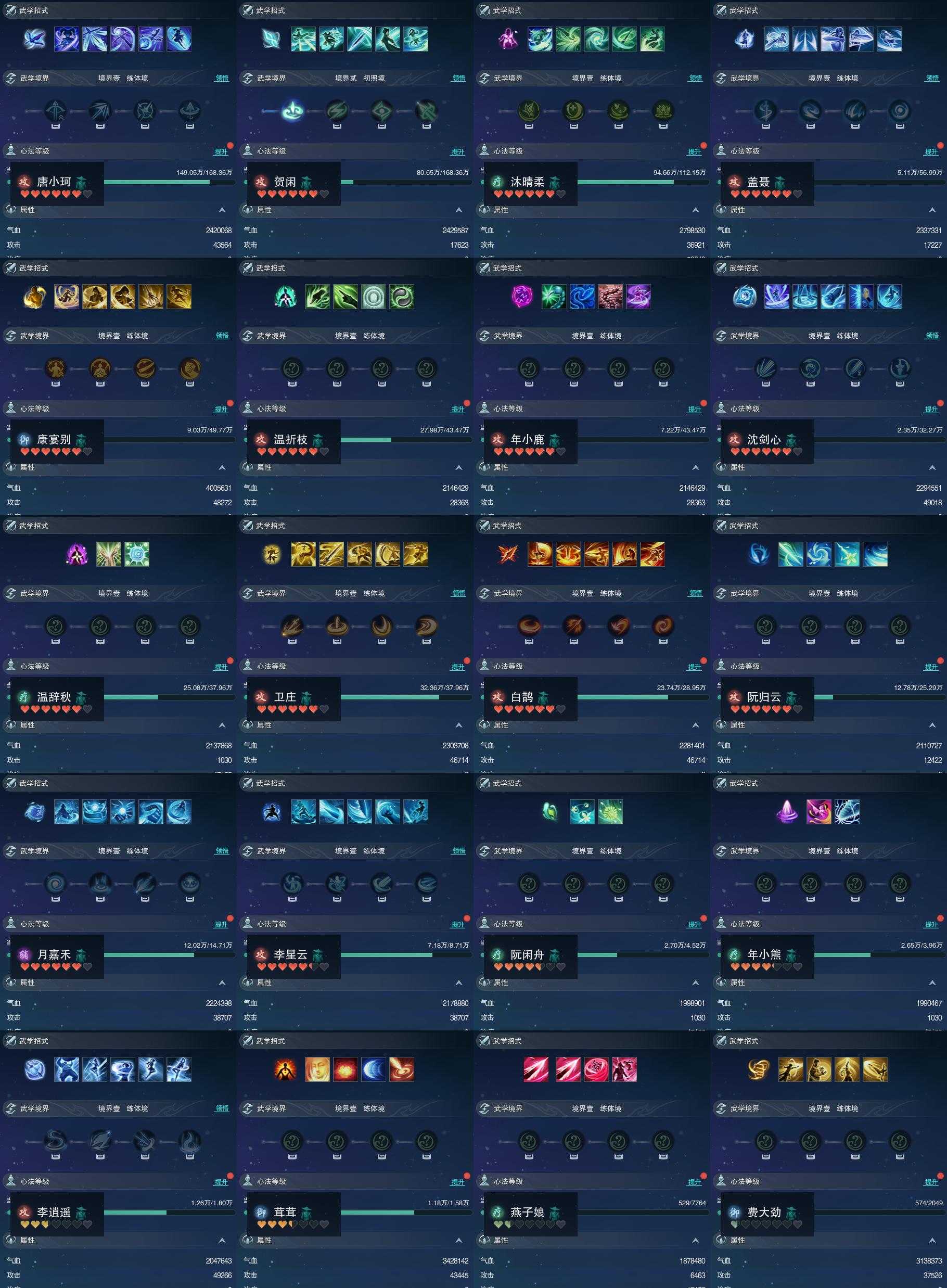 【同伴】唐小珂88级境界壹,贺闲志88级境界贰,沐晴柔85级境界壹,盖聂志80级境界壹,康宴别79级境界壹,温折枝78级境界壹,年小鹿78级境界壹,沈剑心77级境界壹,温辞秋77级境界壹,卫庄志77级境界壹,白鹊志75级境界壹,阮归云74级境界壹,月嘉禾70级境界壹,李星云66级境界壹,阮闲舟61级境界壹,年小熊60级境界壹,李逍遥54级境界壹,茸茸志53级境界壹,燕子娘47级境界壹,费大劲33级境界壹