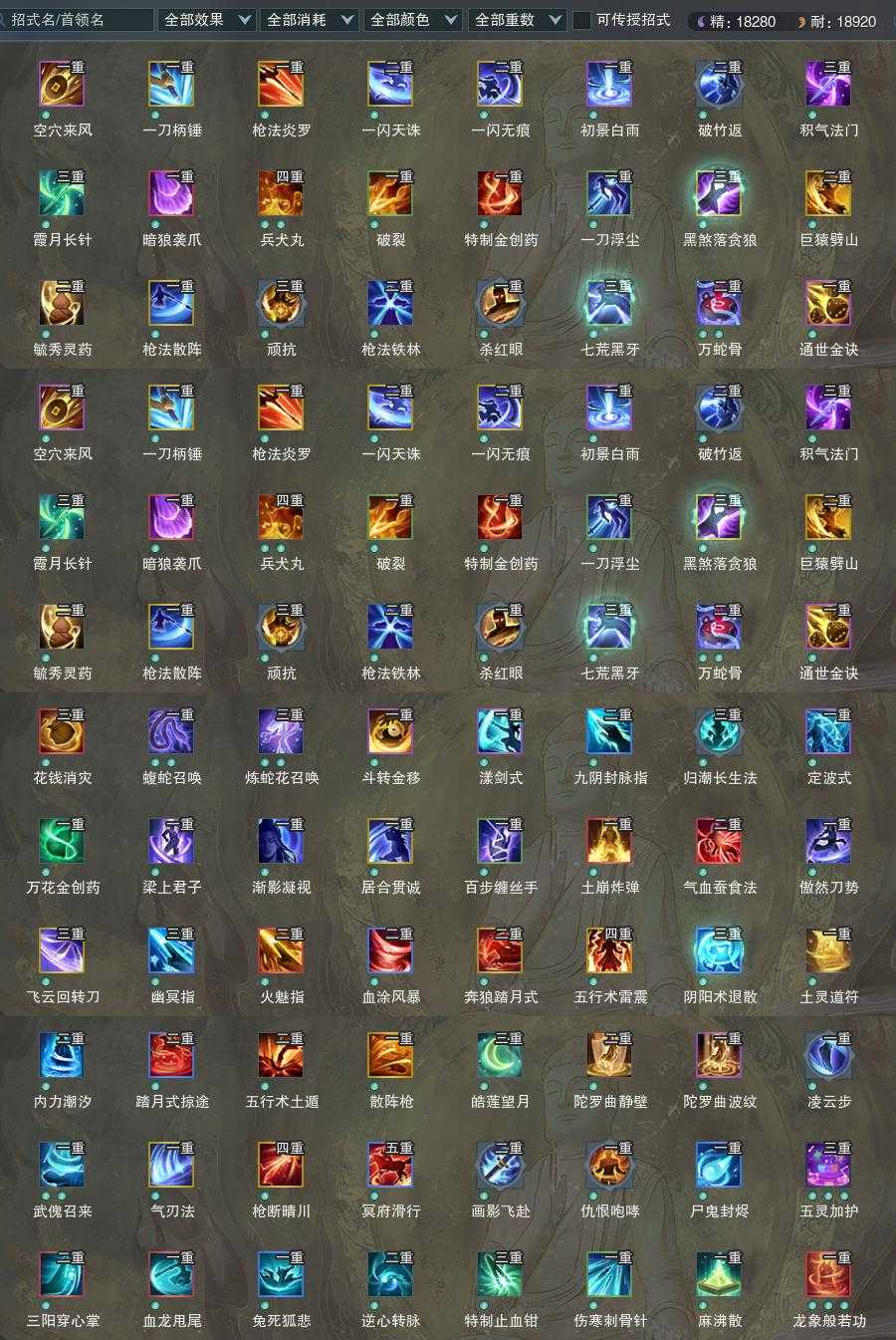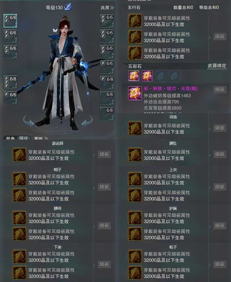 【橙武】(仅本门派)[十一W奇遇书*1, 130小铁*26, 120小铁*663, 奇遇书照影*1, 80玄晶*1, 70玄晶*1, 110小铁*478, 100小铁*227, 95小铁*229, 90小铁*263, 80小铁*309, 70小铁*226, 110CW以彼道, 95CW新亭侯, 门派特效五相斩]