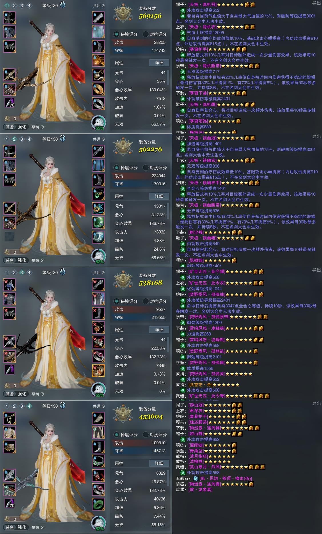 【装备】130级,惊羽诀PVE569156,天罗诡道PVE562276,惊羽诀PVP538168,唐门装备四453604