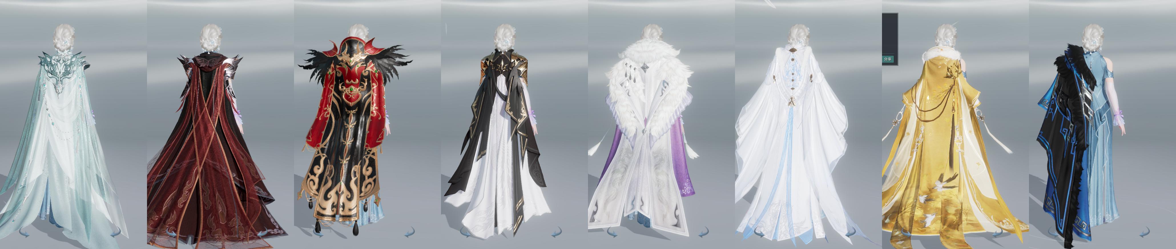 【披风】11个,[刀宗预热披风, 7W资历披风, 衍天预热披风, 雪啸刚风, 一代浩气, 叽盒子披风, 蓝鼠盒子披风, 云麒赫奕]