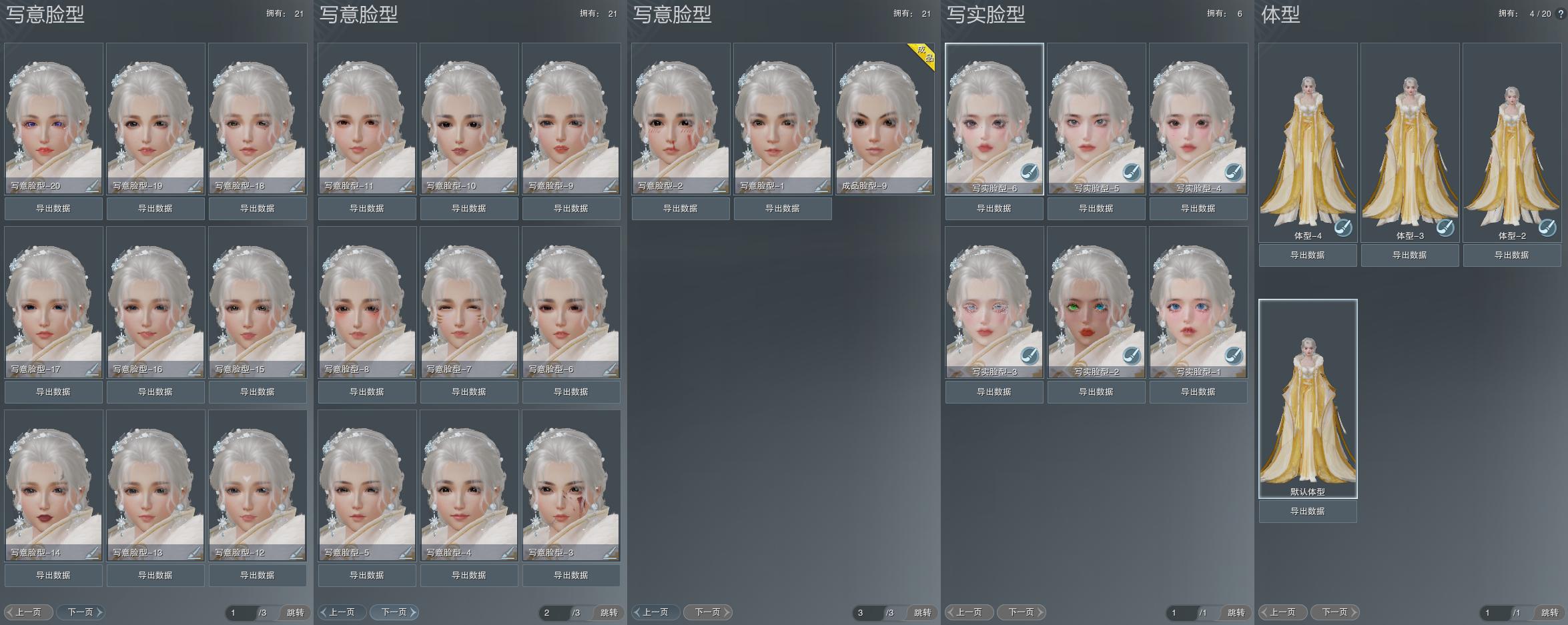 【捏脸】写意脸型21个,写实脸型6个,体型4个