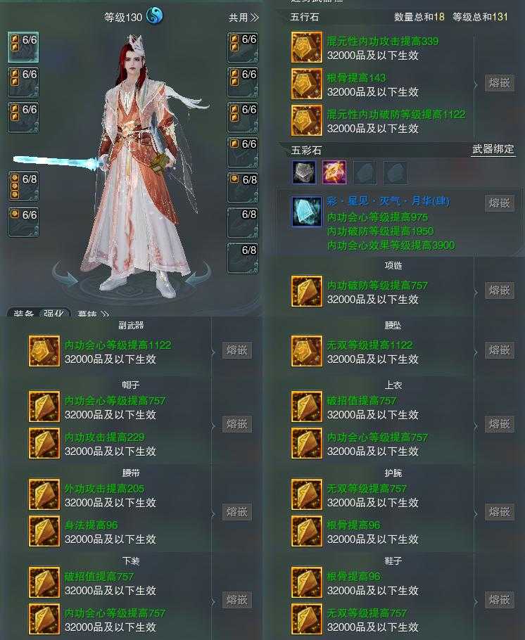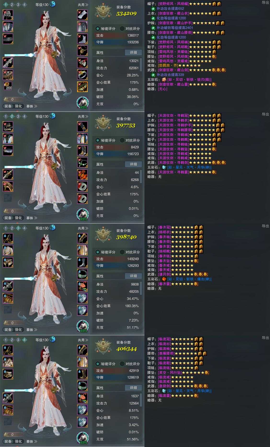【装备】130级,太虚剑意PVP534209,紫霞功PVP397753,太虚剑意PVE398740,纯阳装备四406344
