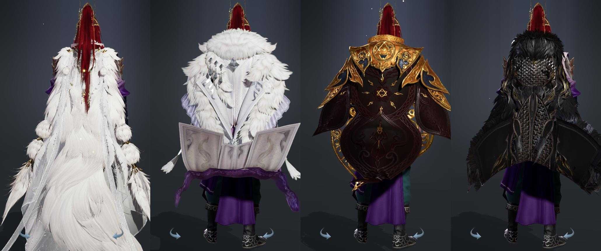【披风】4个,[雪啸刚风, 天火之眼, 黑盒子披风, 白狐裘]