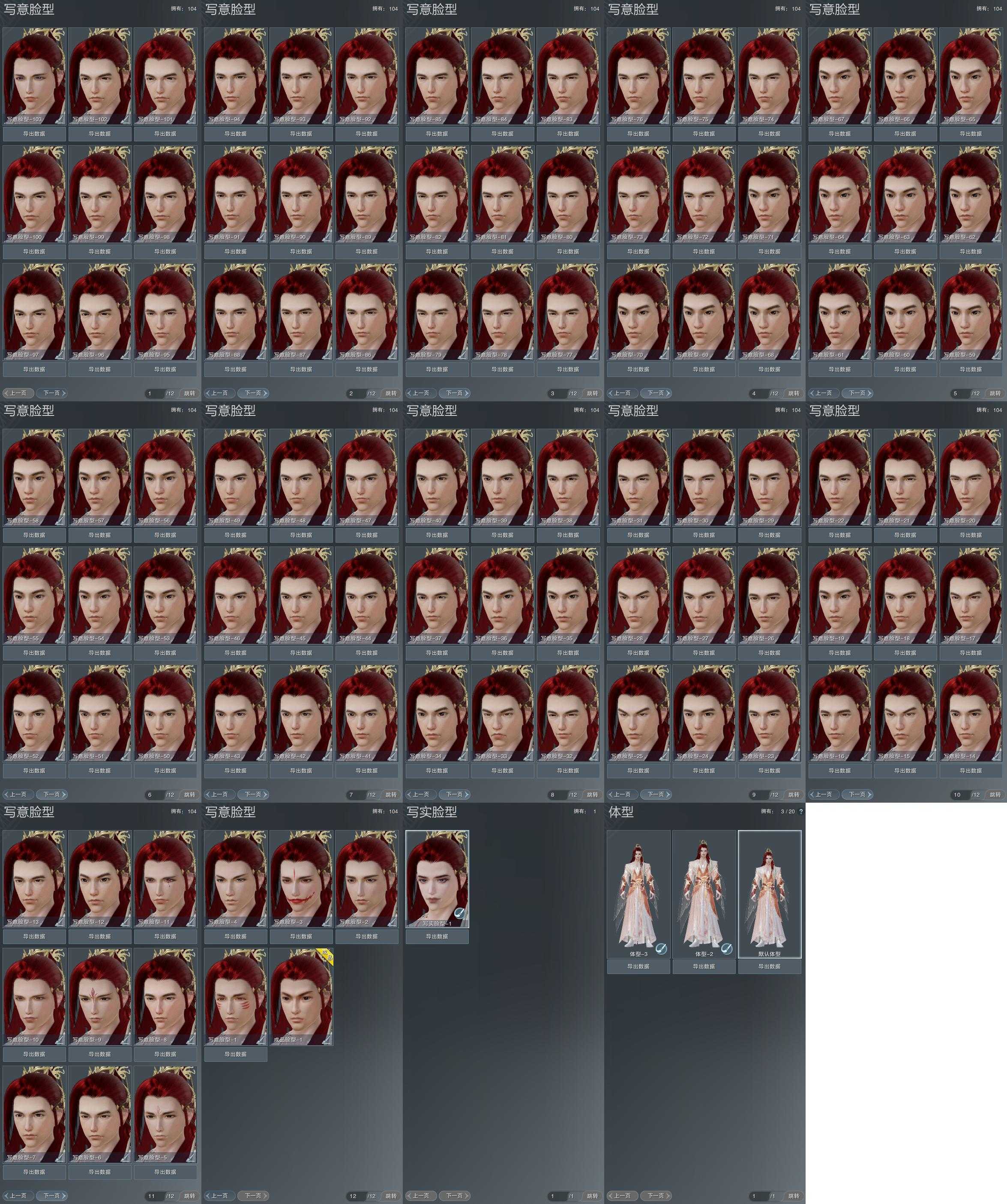 【捏脸】写意脸型104个,写实脸型1个,体型3个