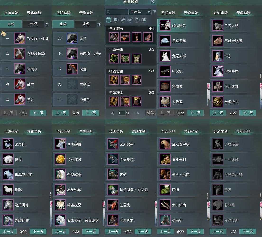 【坐骑】8个[西风瘦逐狱, 飞霞骠惊帆, 乌鬃踏焰驹]