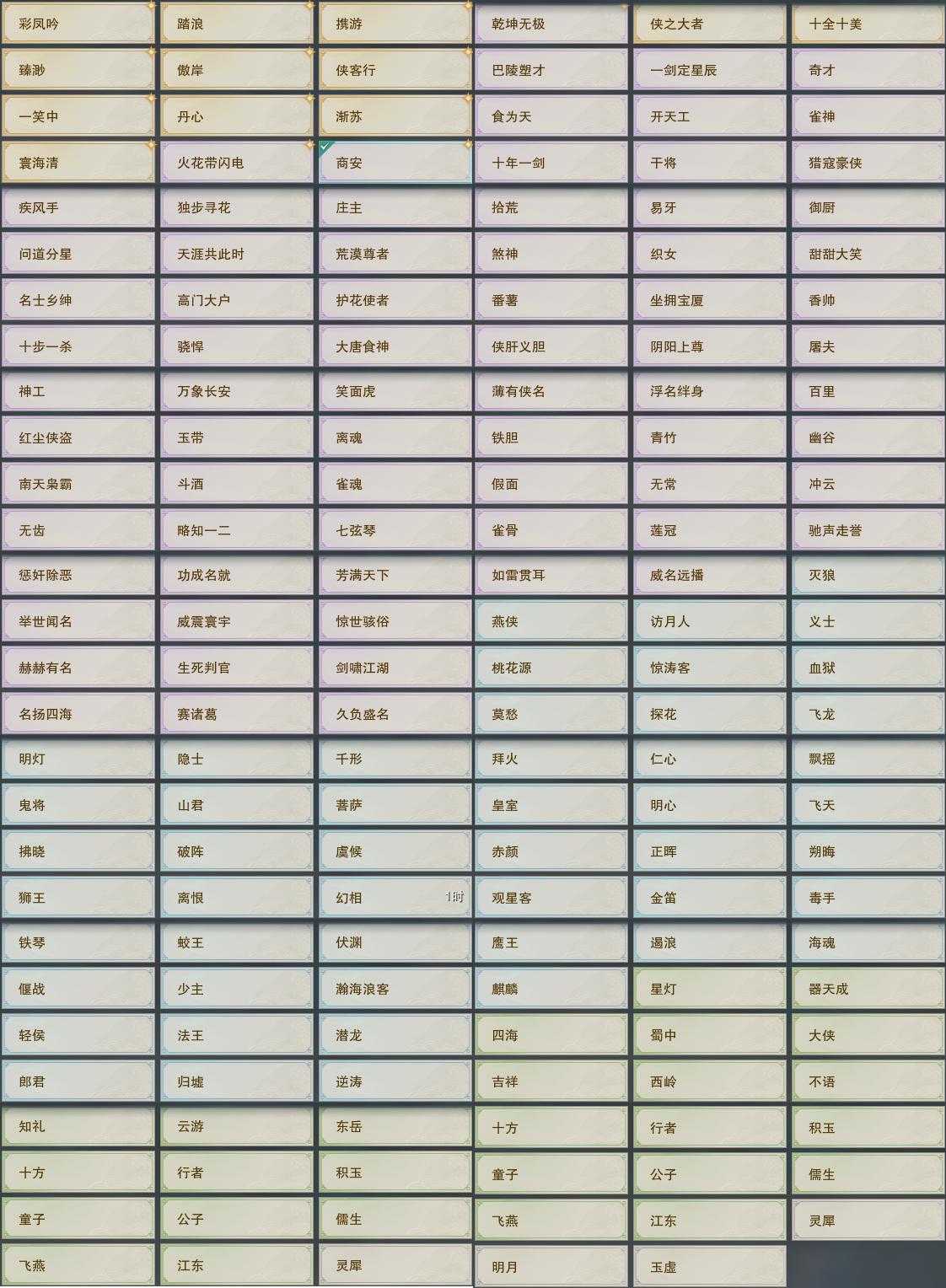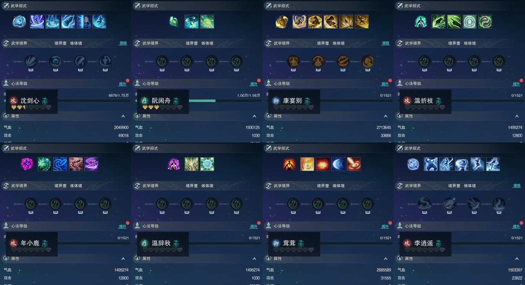 【同伴】沈剑心55级境界壹,阮闲舟53级境界壹,康宴别1级境界壹,温折枝1级境界壹,年小鹿1级境界壹,温辞秋1级境界壹,茸茸志1级境界壹,李逍遥1级境界壹