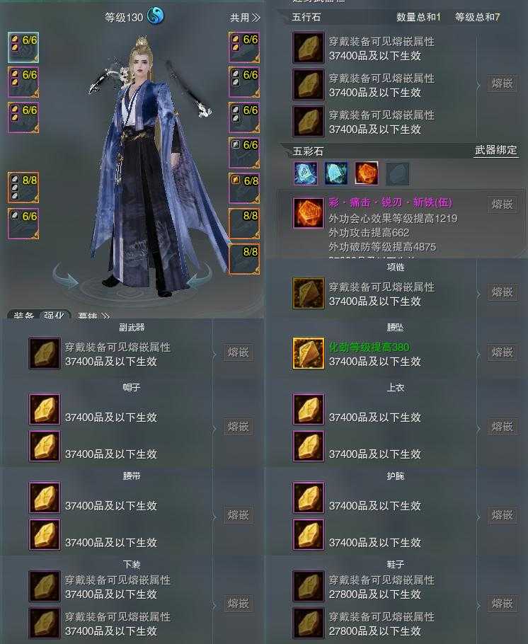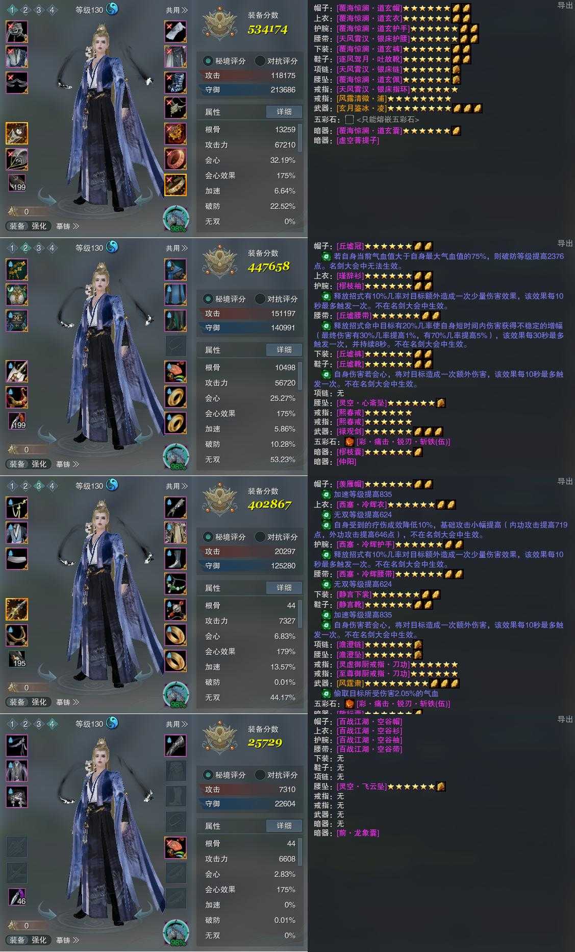 【装备】130级,紫霞功PVP534174,紫霞功PVE447658,太虚剑意PVE402867,装备四25729