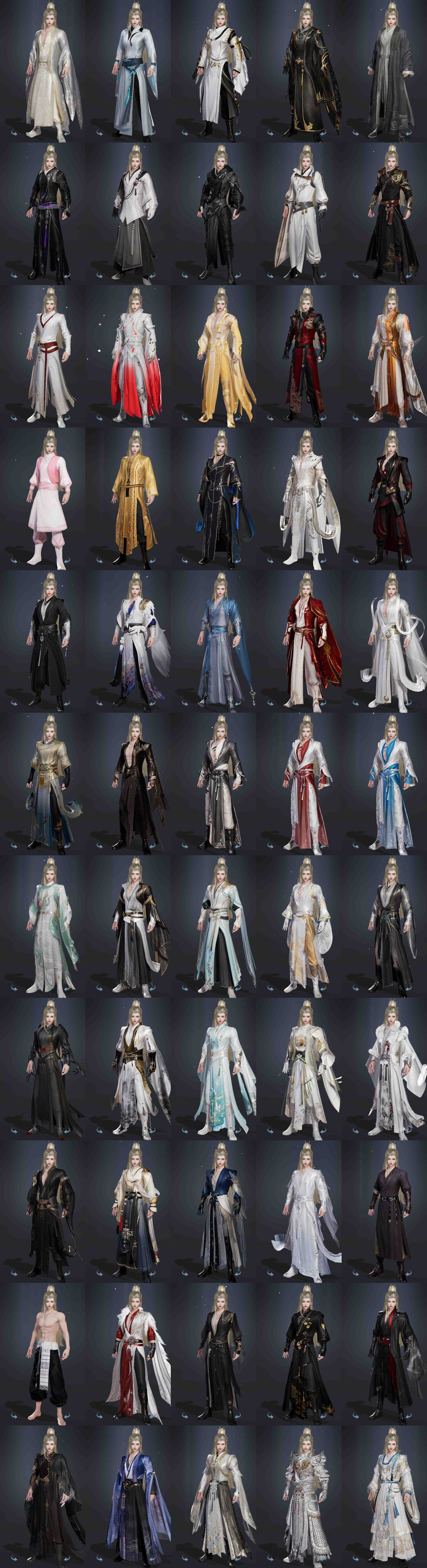限时限量:[道袍, 黄玫瑰, 望云山椿, 十三万资历衣, 十六万资历衣, 烟花套, 镜湖云遥, 十二周年工作服, 客行逍遥夜影, 客行逍遥撷英, 客行逍遥天旷, 盈露珏茗, 一期福袋成衣, 幽涧愀兮, 十三周年成衣, 庭落西风, 十四周年工作服, 云闲归鹤]