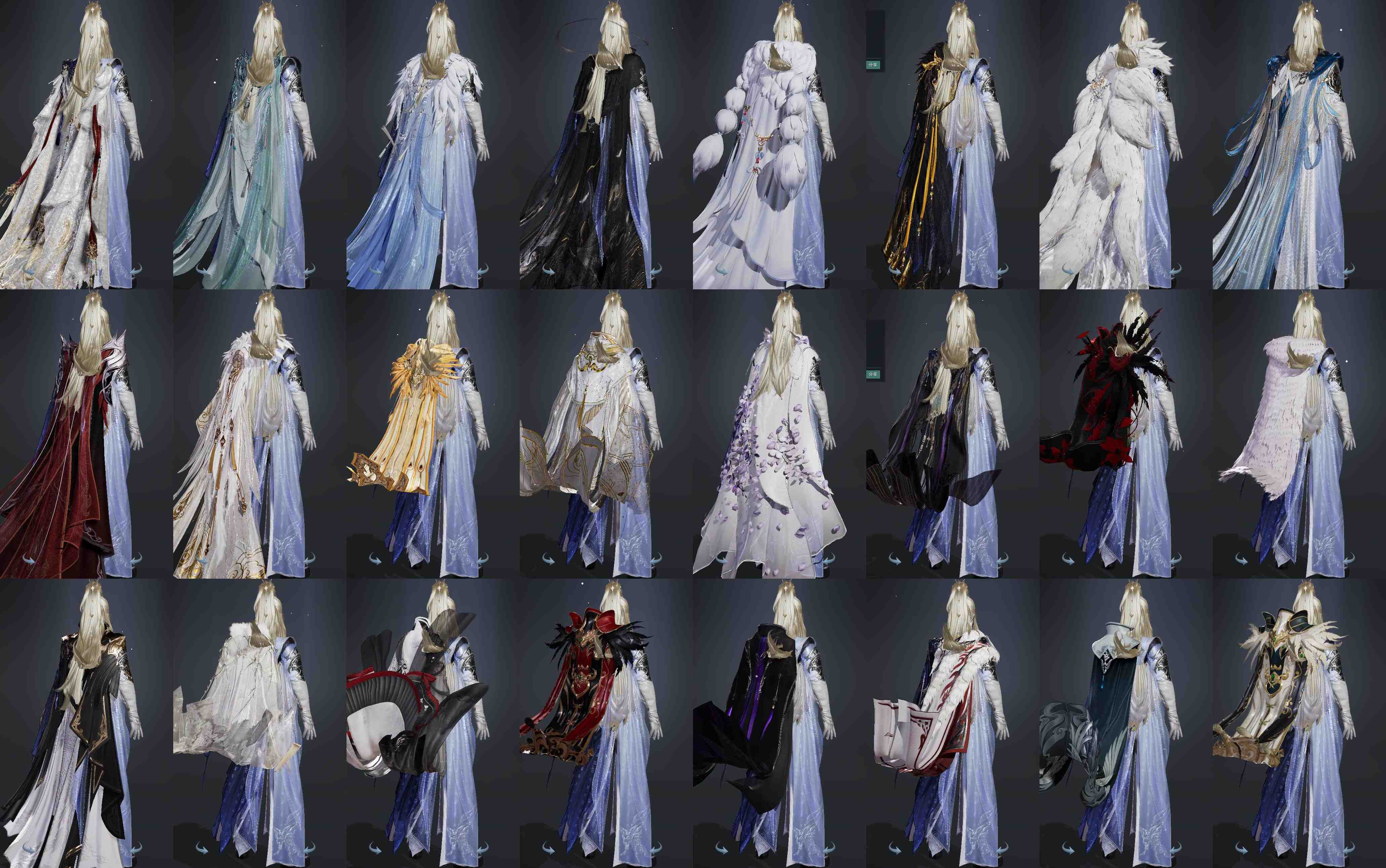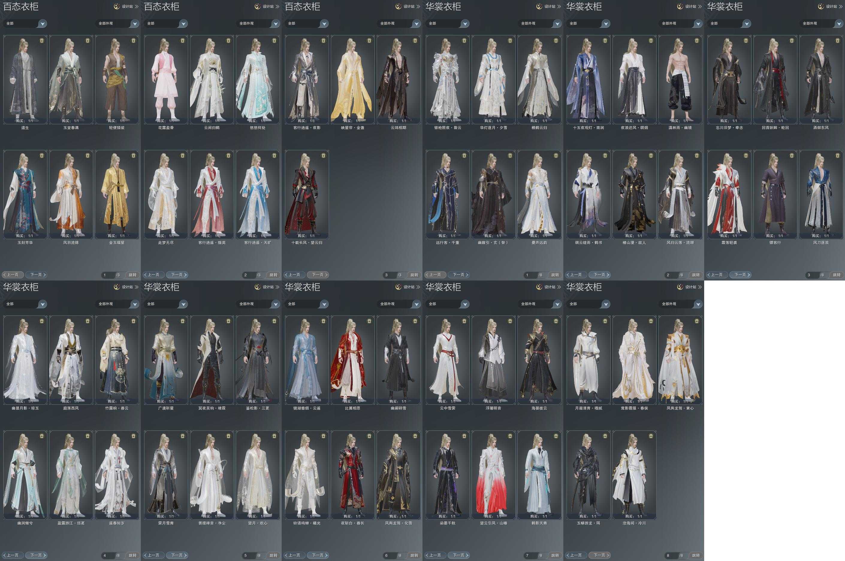 单盒成衣:[白菩提衣, 鉴松影三更衣, 红梅盒衣, 紫忘川衣, 白幽昙衣, 黑傣族衣, 黑椿山衣, 黑幽馥衣替]