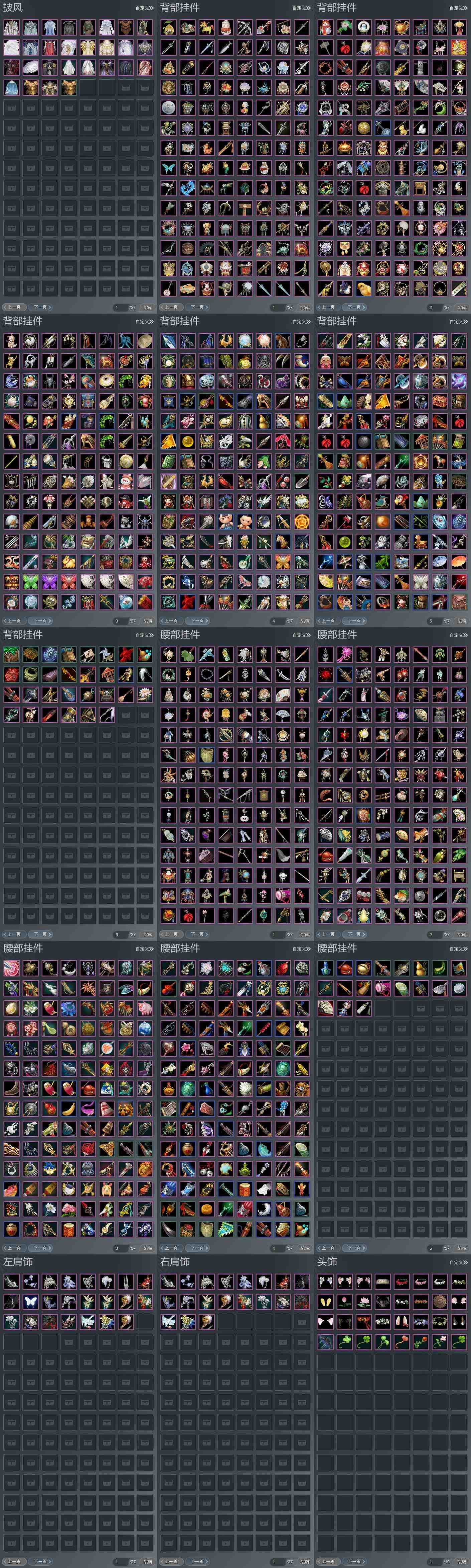 【背挂】590个[阴阳剑, 浩气弓, 红黑白路, 石剑溟灵, 白楼兰伞, 五七盒挂件, 紫忘川挂件]