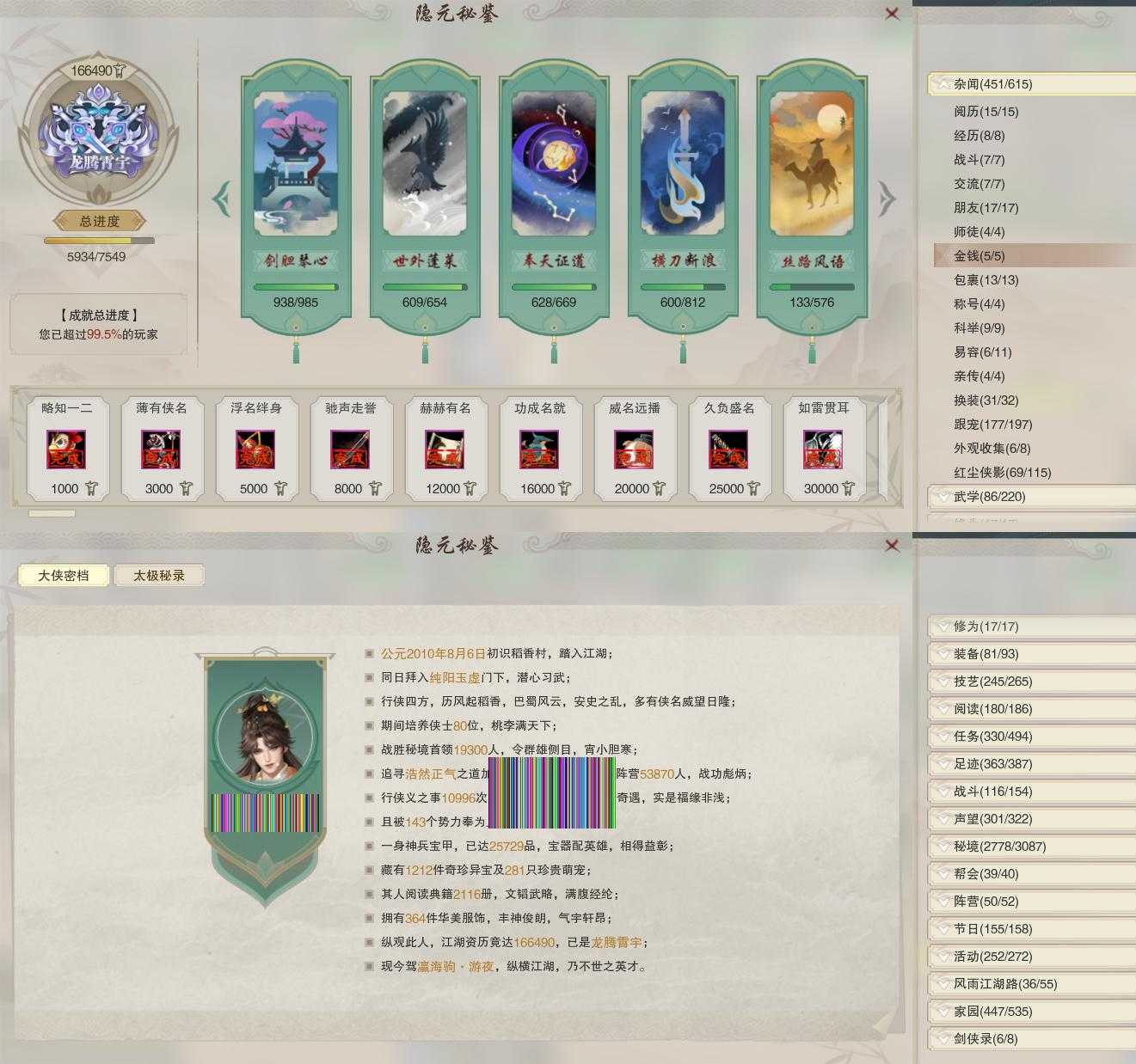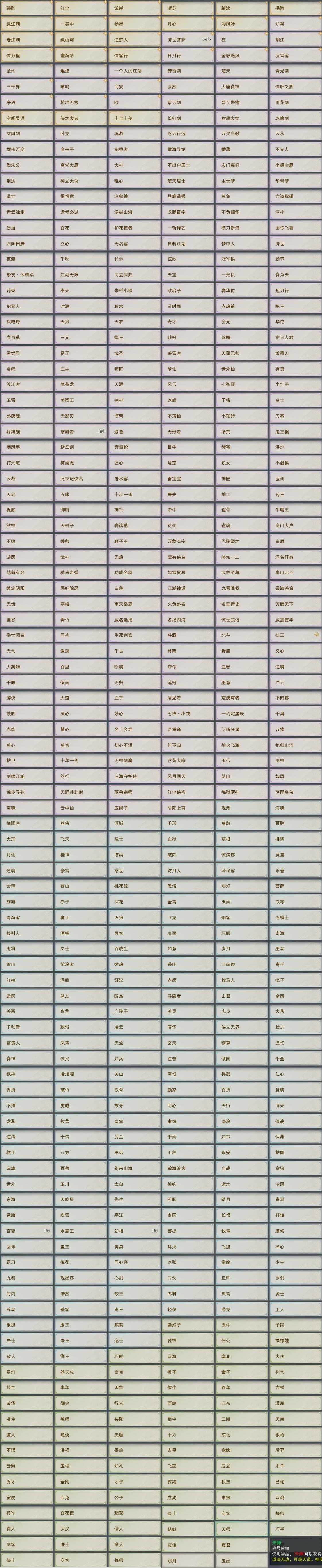 【奇遇】43个[白日梦, 天涯无归, 三山四海, 劝学记, 雪山恩仇, 阴阳两界, 莫负初心, 兔江湖, 平生心愿, 黑白路, 惜往日, 乱世舞姬, 塞外宝驹, 争铸吴钩, 韶华故, 虎啸山林, 济苍生, 护佑苍生, 少年行, 故园风雨, 扶摇九天, 三尺青锋, 流年如虹, 舞众生, 清风捕王, 侠行囧途, 寻猫记, 茶馆奇缘, 庆舞良宵, 万灵当歌]
