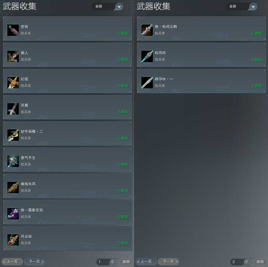 【拓印】13页外观收集,12武器拓印,拓印100CW瀚海长风,拓印100奇遇CW煞·霜影玄玑,拓印110奇遇CW煞松间云鹤