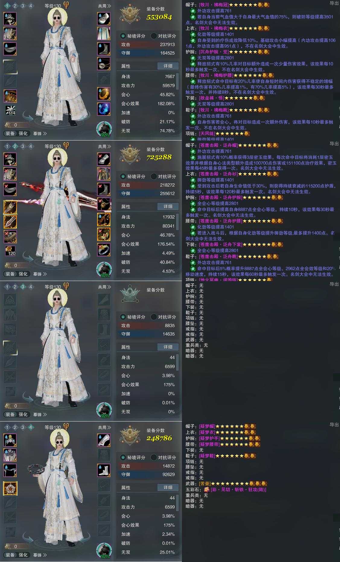 【装备】130级,山居剑意/问水诀PVE553084,山居剑意/问水诀PVP725288,装备三0,装备四248786